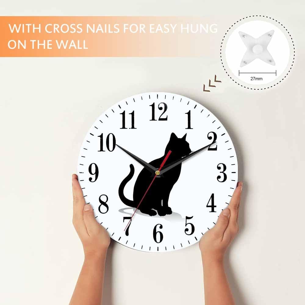 - Material: The Cat Silhouette clock is made of classic PVC material, which is harmless to the environment. Metal pointer, the printed pattern is bright and does not fade.