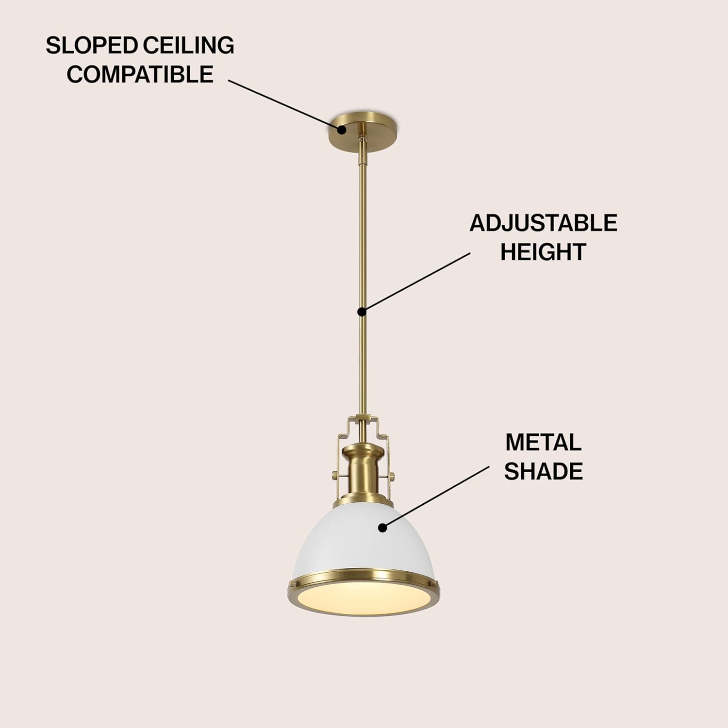 JONATHAN Y JYL9535D Homer 10" 1-Light Modern Industrial Iron LED Dome Pendant, Bohemian, Classic, Cottage, Farmhouse, Industrial, Rustic, Transitional, Dining Room, Kitchen, Foyer, White/Brass Gold
