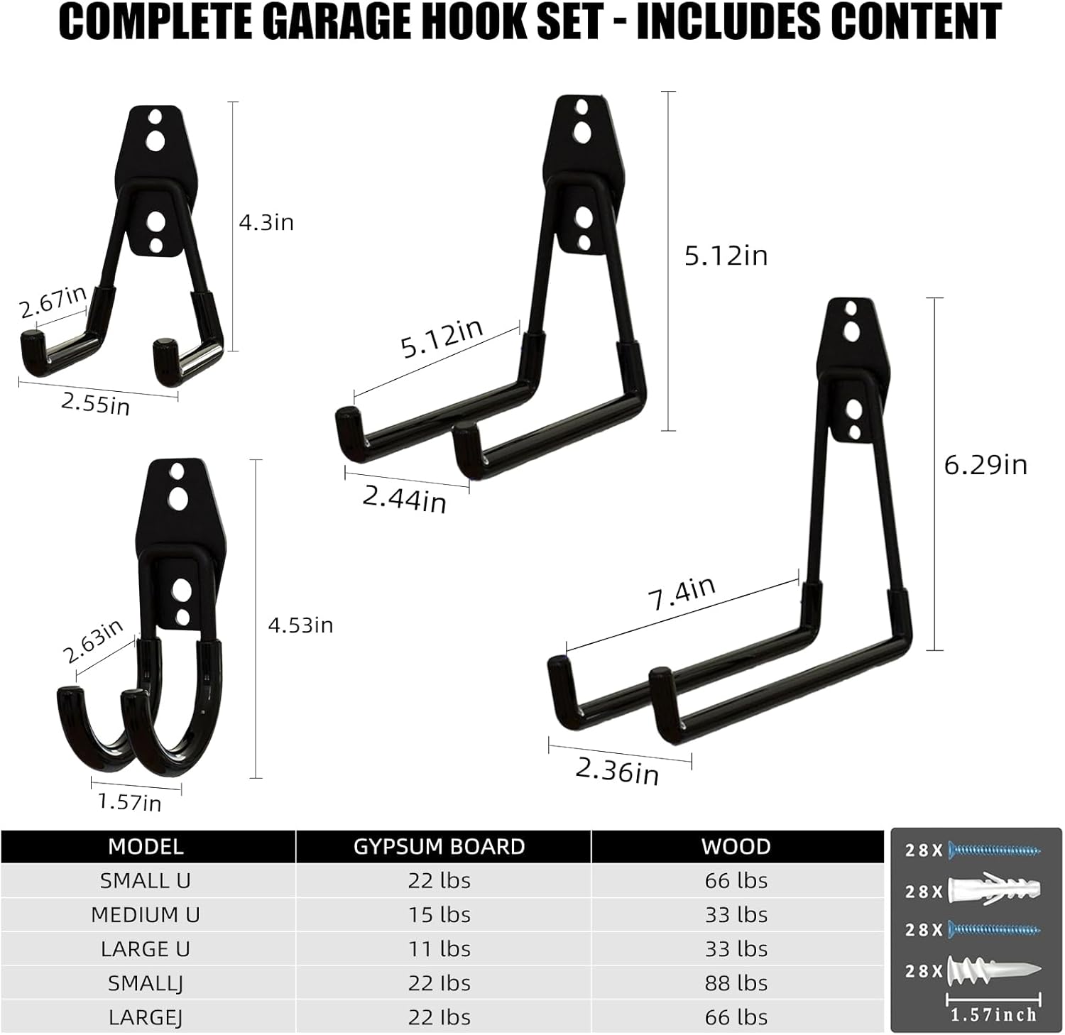 - WIDE APPLICATION: The innovative garage hooks for hanging design maximizes storage capacity. Suitable for various scenarios such as garages, warehouses, outdoor tool sheds, etc, it flexibly meets different wall mount hooks storage needs