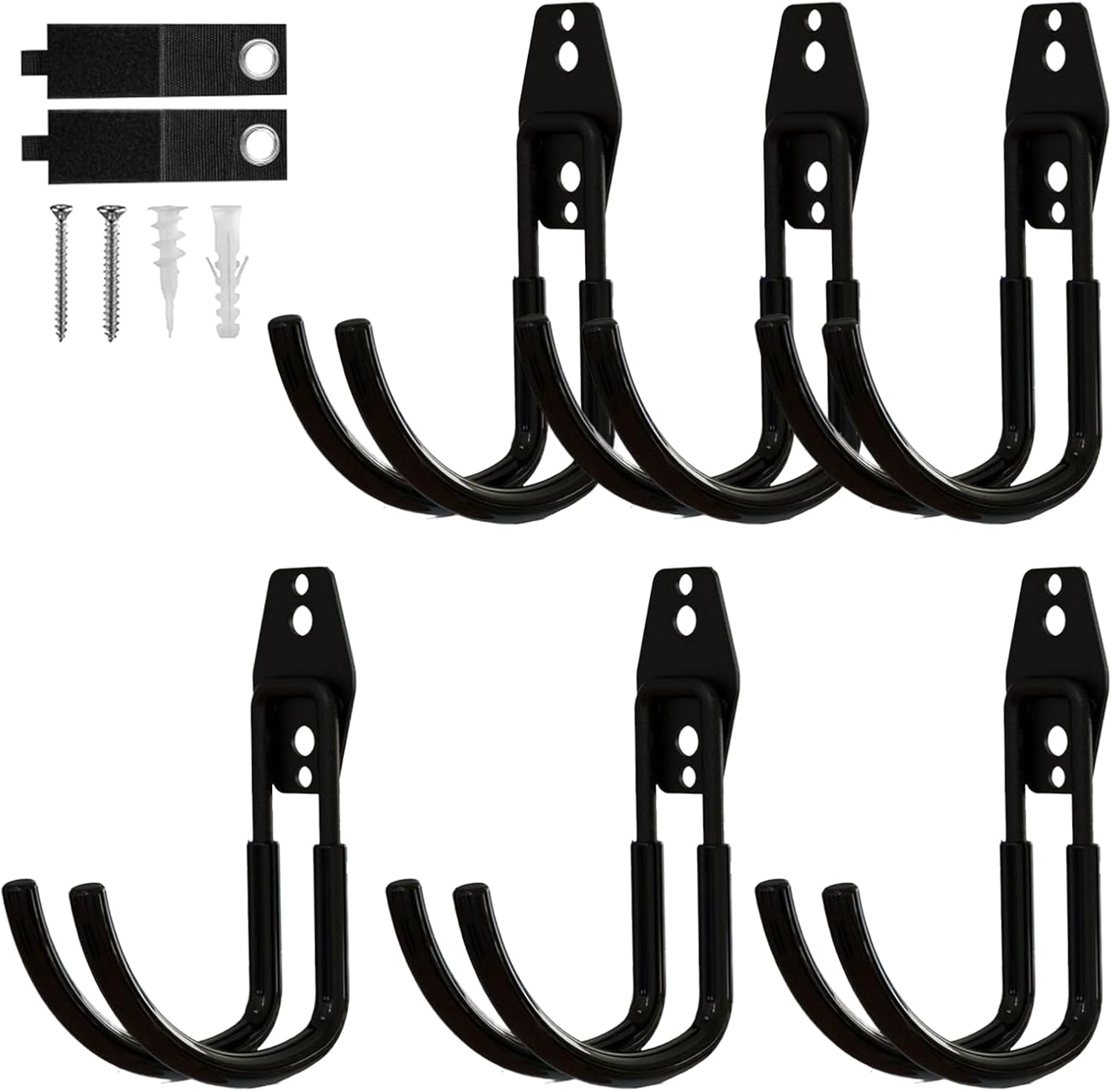 - SET CONTENTS AND USAGE: The set includes 5 large black round ladder hooks, measuring 5.7x4.09x1.57 inches, ideal for hanging bulky and heavy items like ladders, bicycles, etc. The garage wall organizer black anti-rust coating enhances visibility in low-light environments
