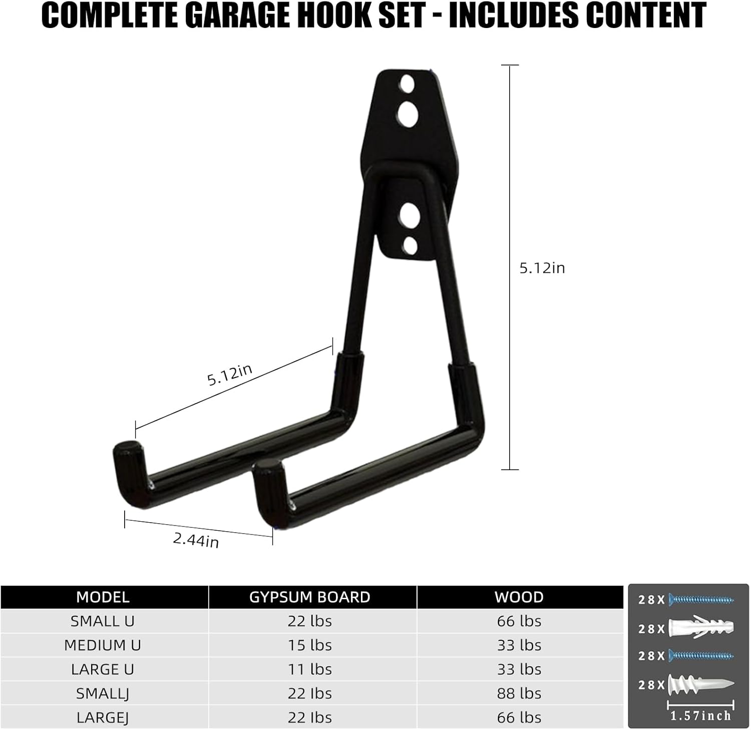 - WIDE APPLICATION: The innovative garage hooks for hanging design maximizes storage capacity. Suitable for various scenarios such as garages, warehouses, outdoor tool sheds, etc, it flexibly meets different wall mount hooks storage needs