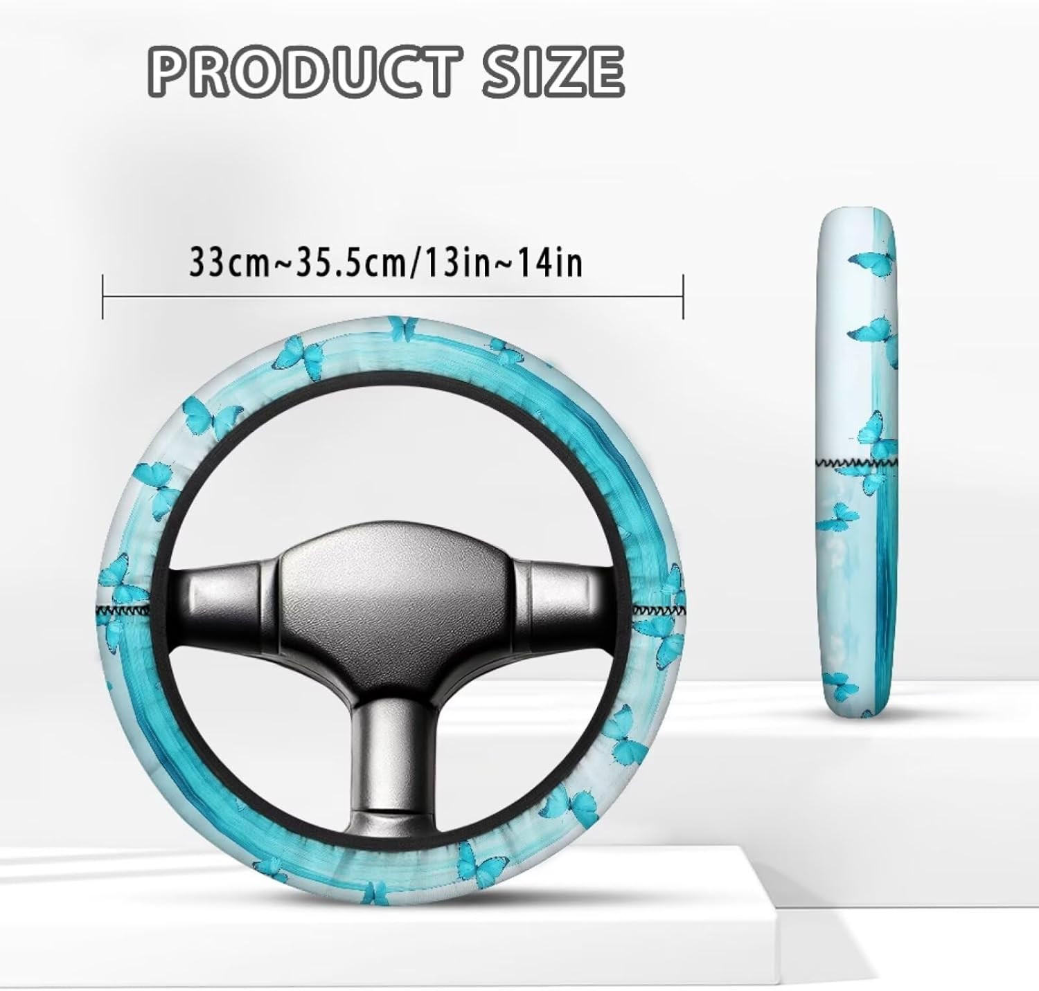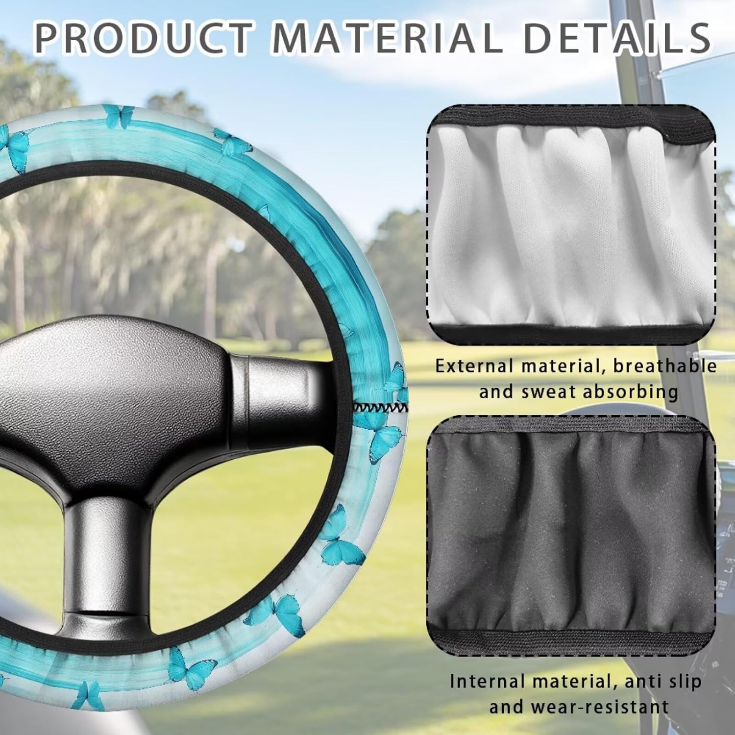 Blue Butterfly Golf Cart Steering Wheel Cover Tropical Beach Stretchable Anti-Slip 13-14 Inch Golf Cart Steering Wheel Covers, Breathable Club Car Accessories Universal Fit