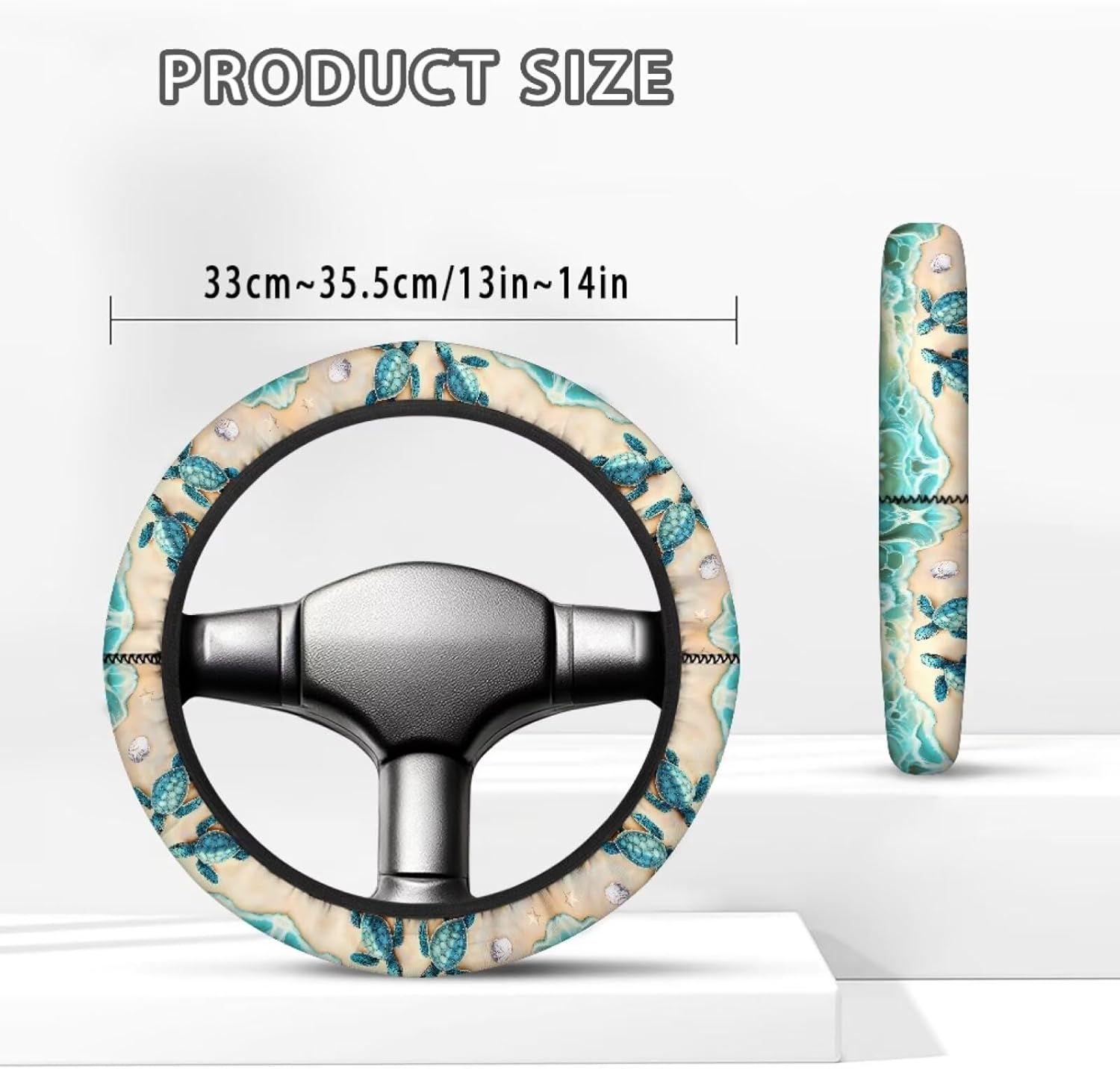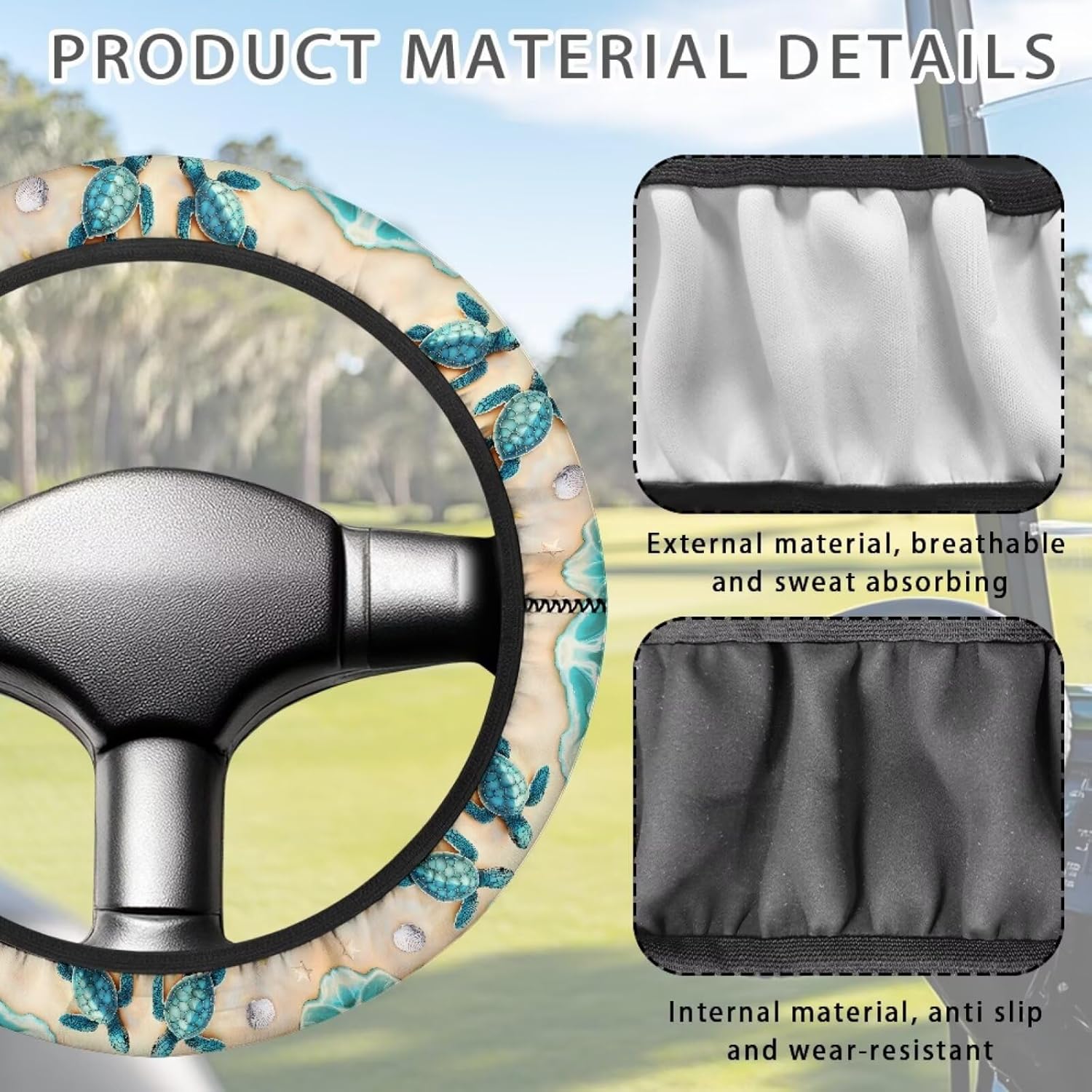 Beach Turtle Golf Cart Steering Wheel Covers Tropical 13.5 Inch Non-Slip Golf Cart Steering Wheel Covers Absorbing Sweat Universal Club Car Accessories Interior Decor