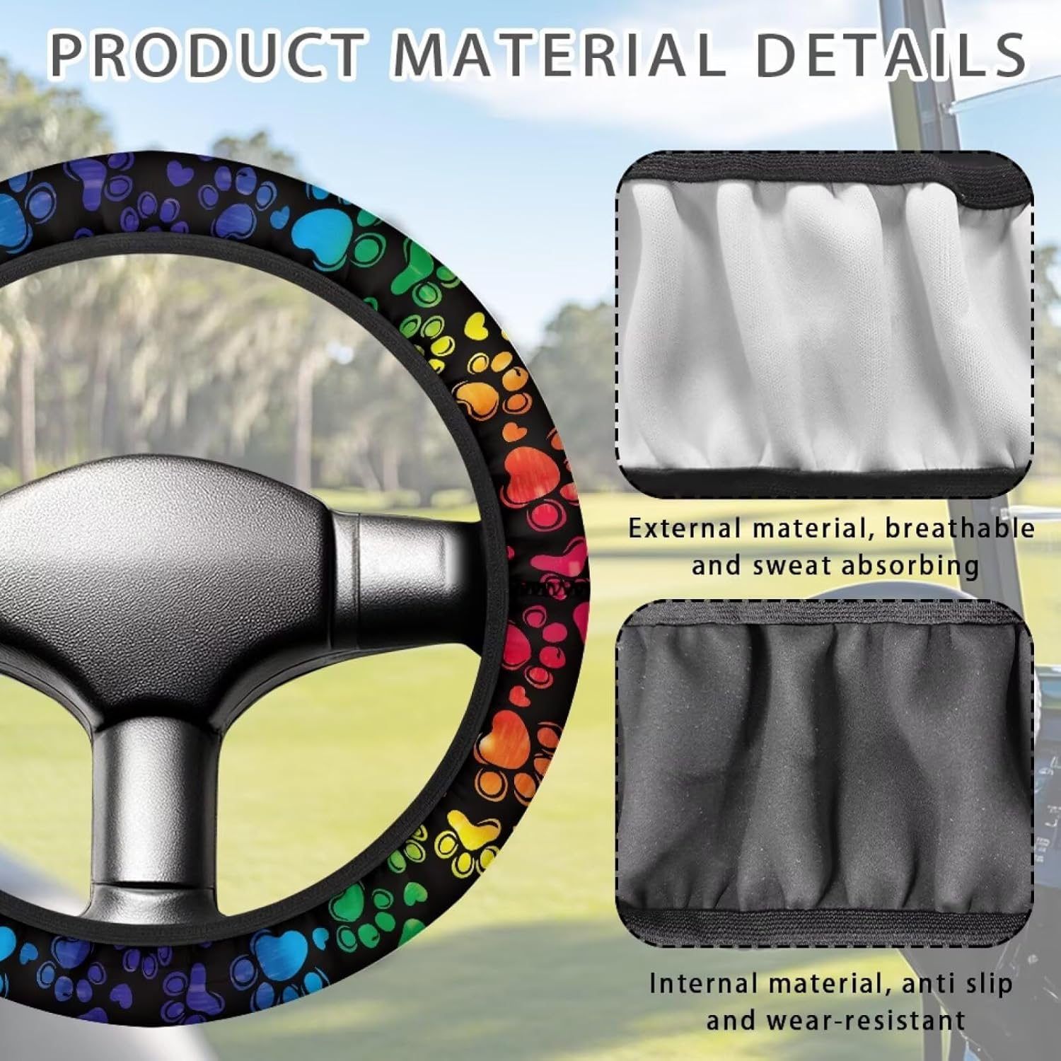 Neon Dog Paw Golf Cart Steering Wheel Cover 13-14 Inch Anti-Slip Golf Cart Steering Wheel Covers Stretchable Accessories for Club Car, Easy to Use and Clean