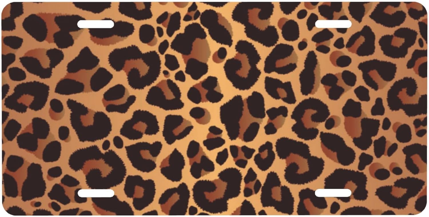 Leopard Print Animal Cheetah Front License Plate for Car Designs Stainless License Plate Cover Holder for Men Women Metal Aluminum Decorative Accessory Vanity Tag Standard 6 X 12 Inch (4 Holes)