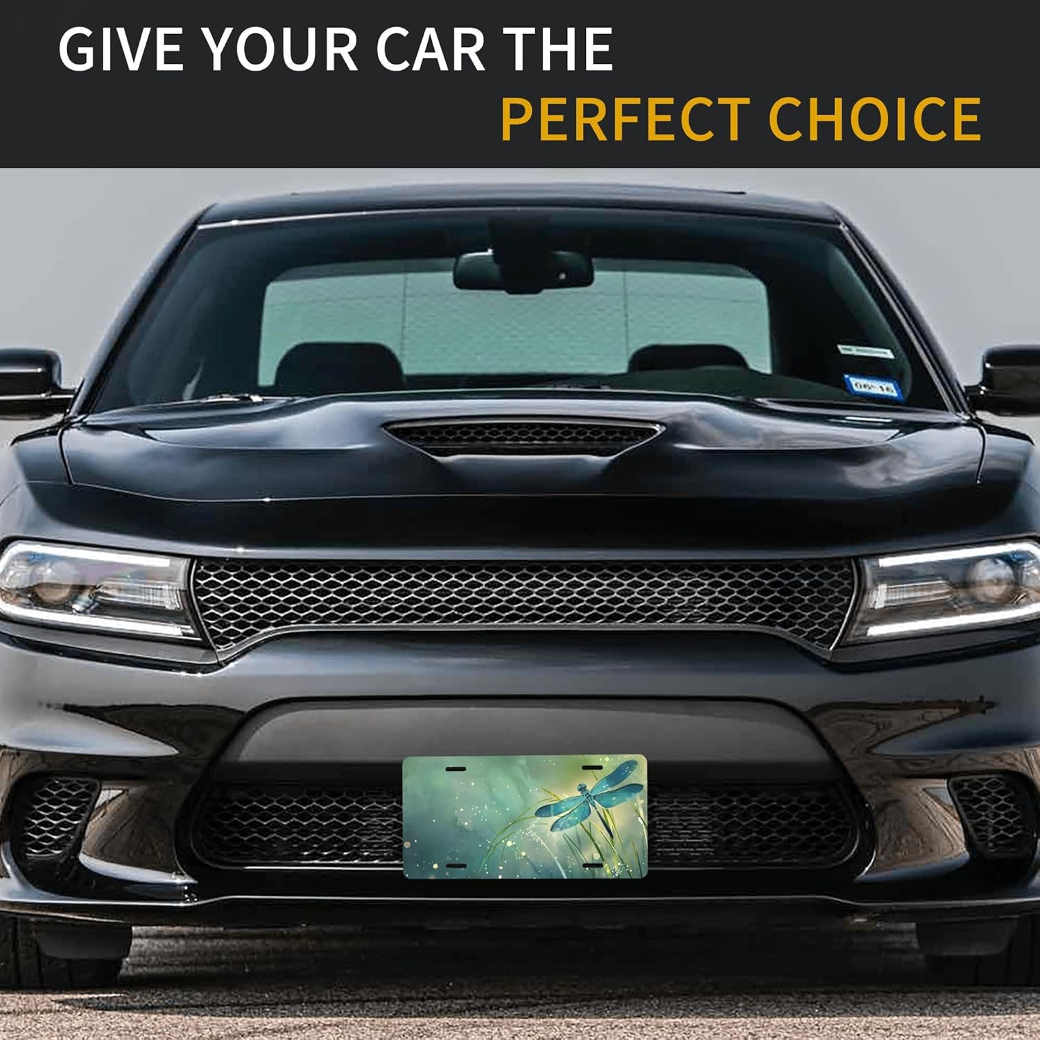 Green Animal Dragonfly Leaf Front License Plate for Car Designs Stainless License Plate Cover Holder for Men Women Metal Aluminum Decorative Accessory Vanity Tag Standard 6 X 12 Inch (4 Holes)