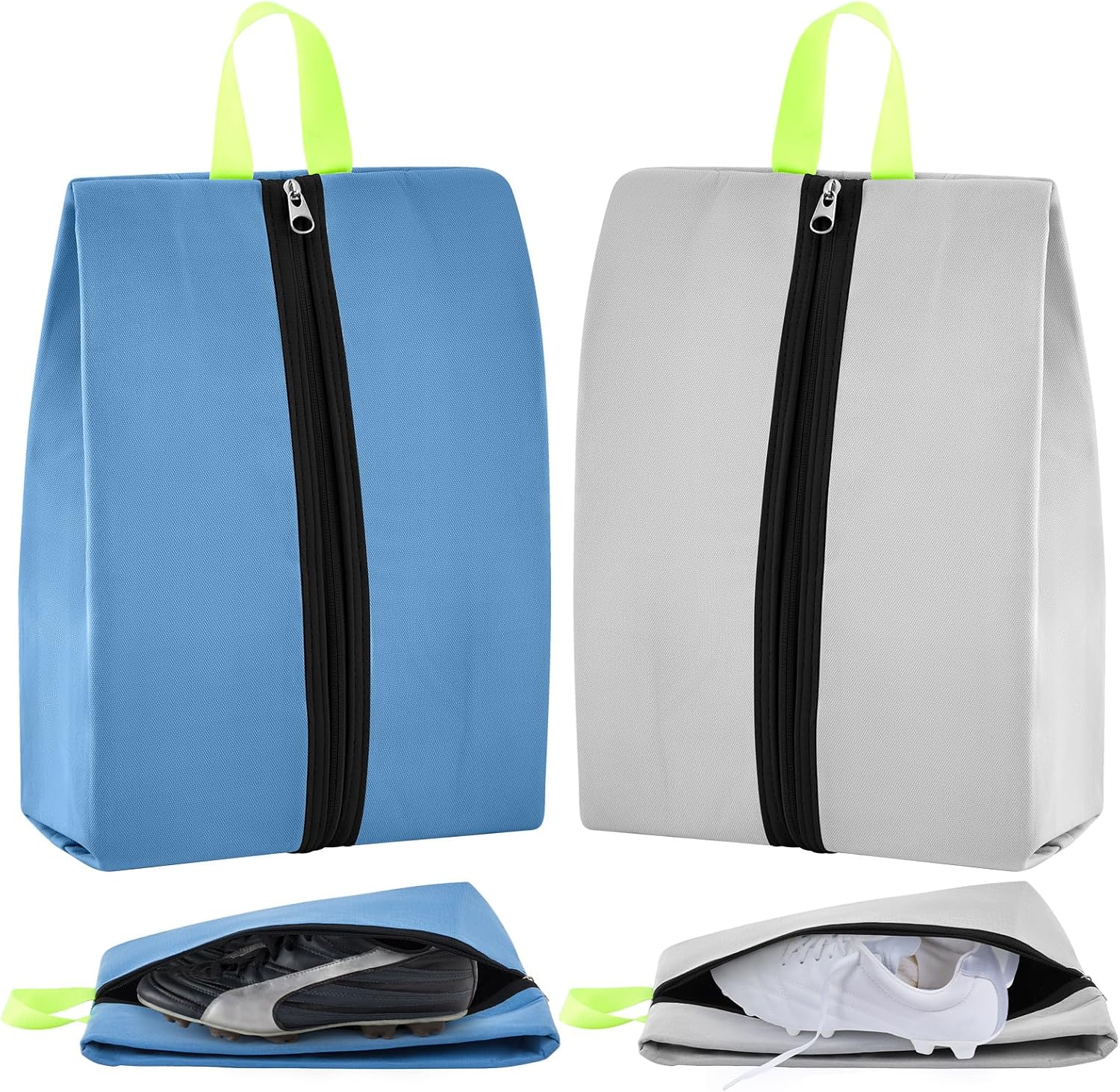 2 Pack Smell Proof Shoe Cleat Bag for Travel Water-Resistant Odor Absorbing Lightweight Golf Soccer Shoe Storage Organizer Pouch with Zipper for Gym Sports Travel Work (Gray, Blue)
