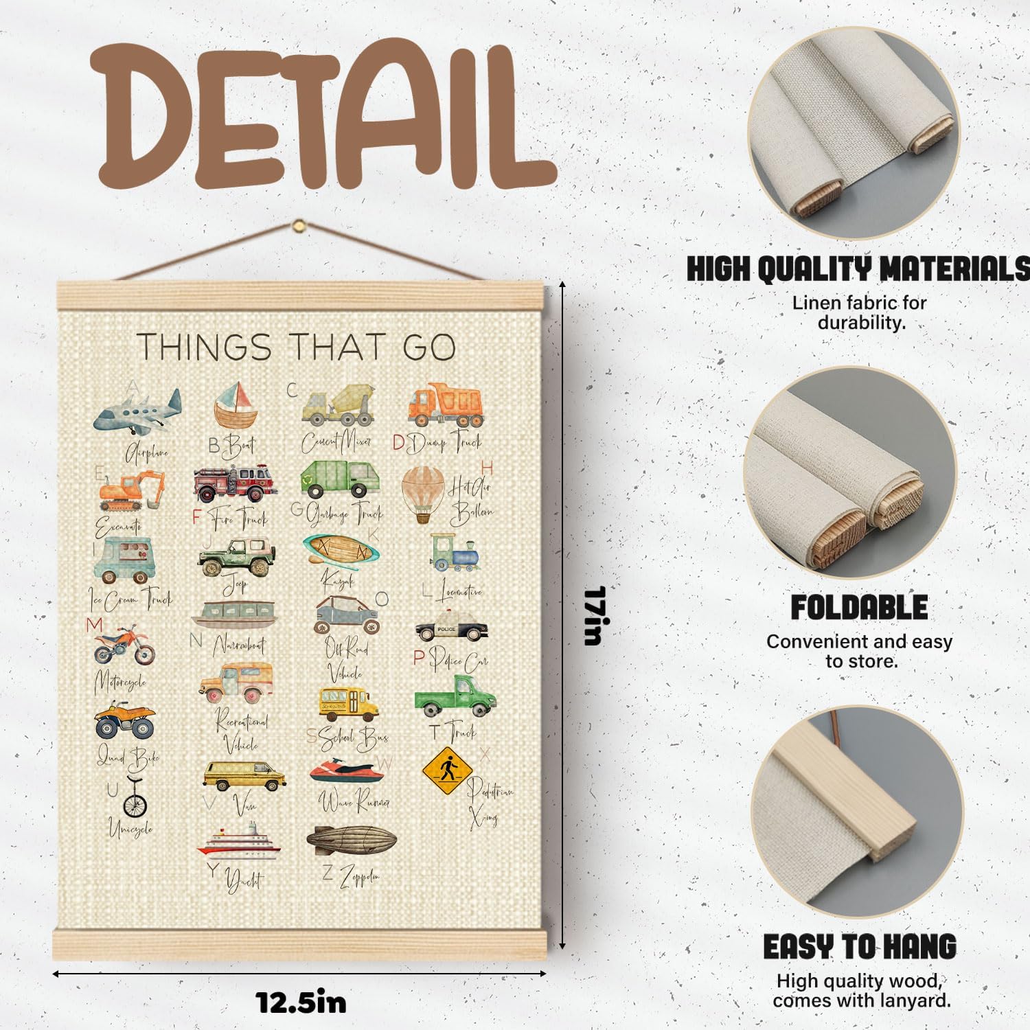 Boat Wades Transportation Alphabet Wooden Poster Hangers 12x16 Inch,Abc Alphabet Transportation Poster Hanger Frame,Cartoon Vehicle Kids Room Nursery Decor Wall Art Hanging