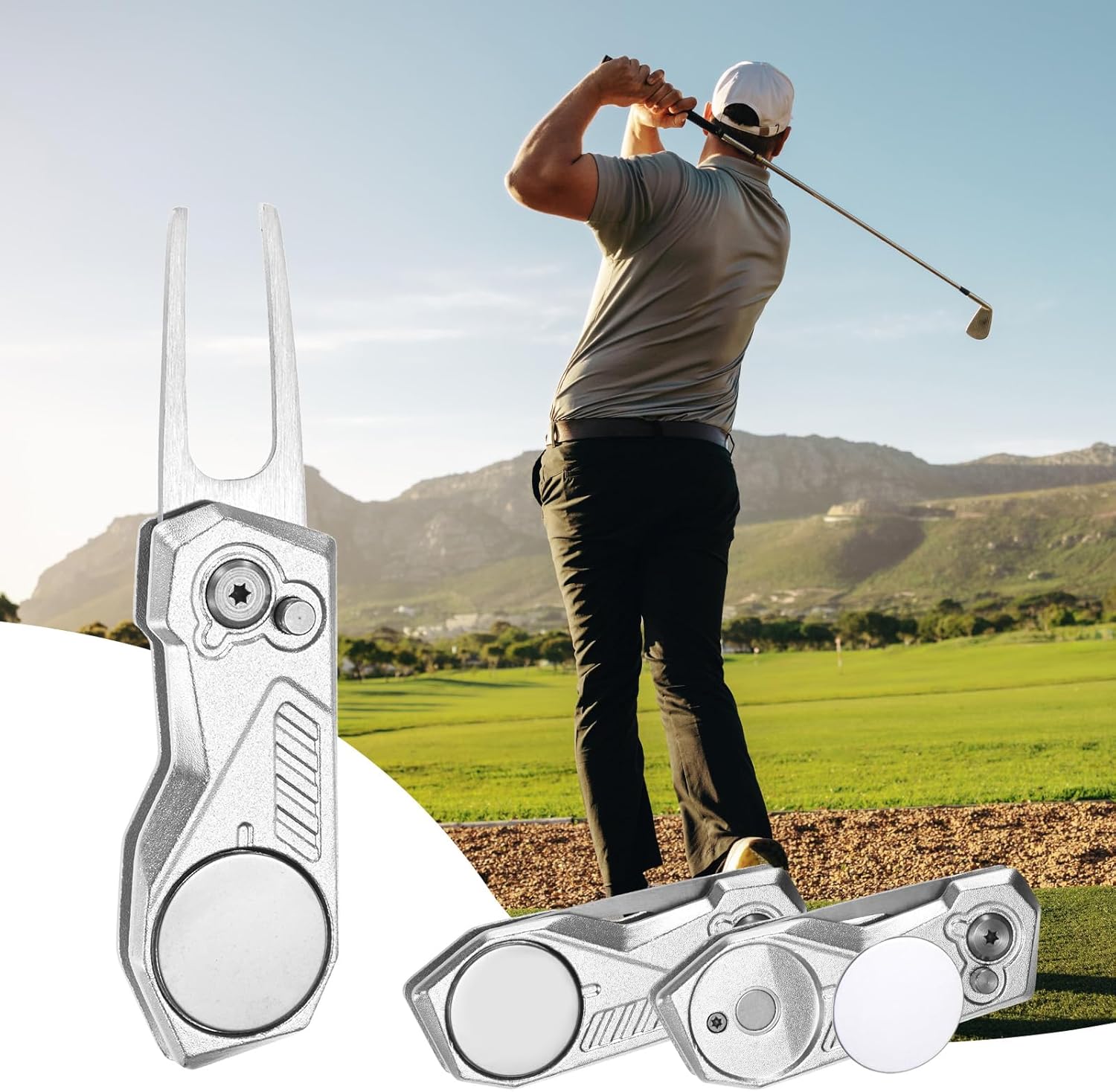 Golf Divot Repair Tool- Switch Foldable Divot Tool with Magnetic Ball Marker & Open Button Use for Golf Accessories