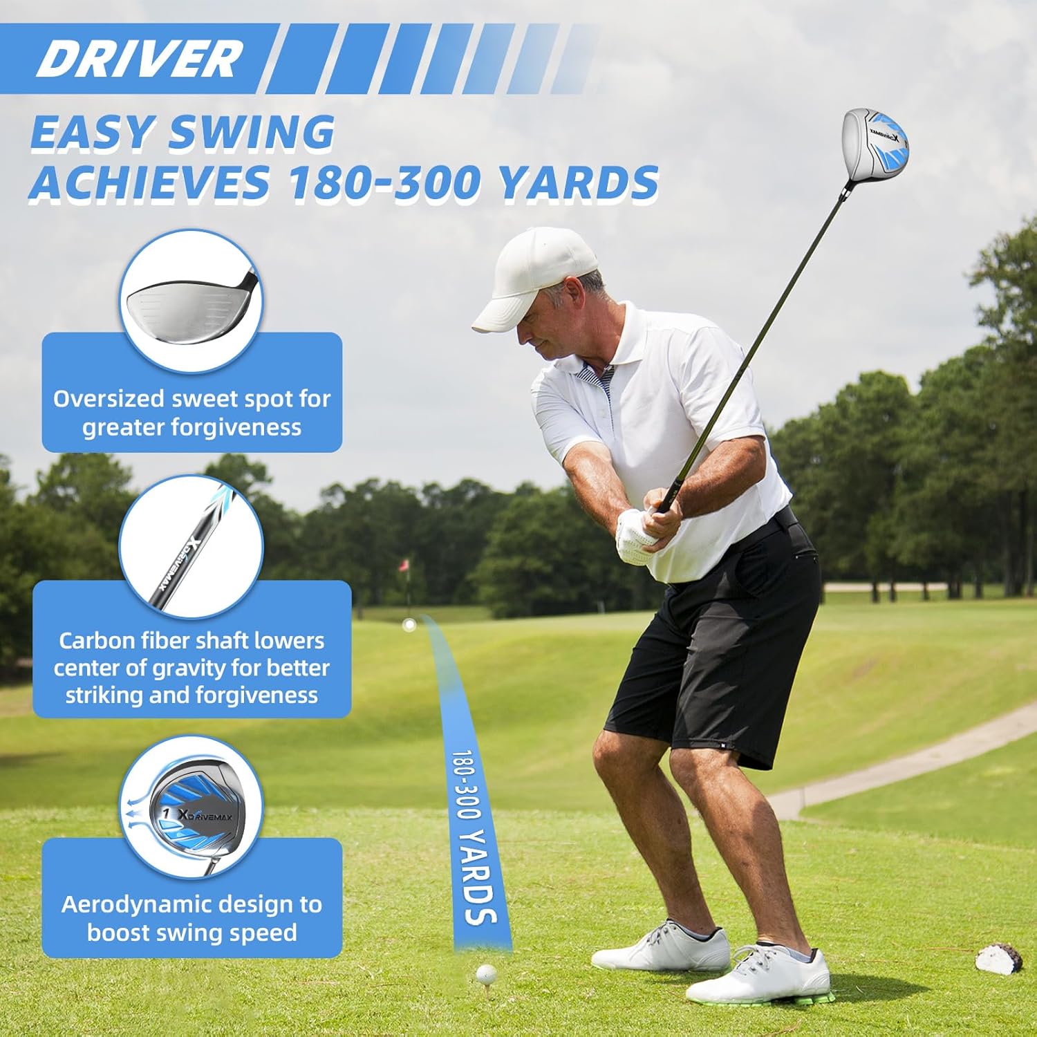 - Convenient Hybrid & Irons: With low-profile design, the high elasticity hybrid can provide more speed to add distance. Besides, the irons with zinc alloy heads have deep grooves that increase friction for better control and spin. By the way, the hybrid is a great alternative for irons