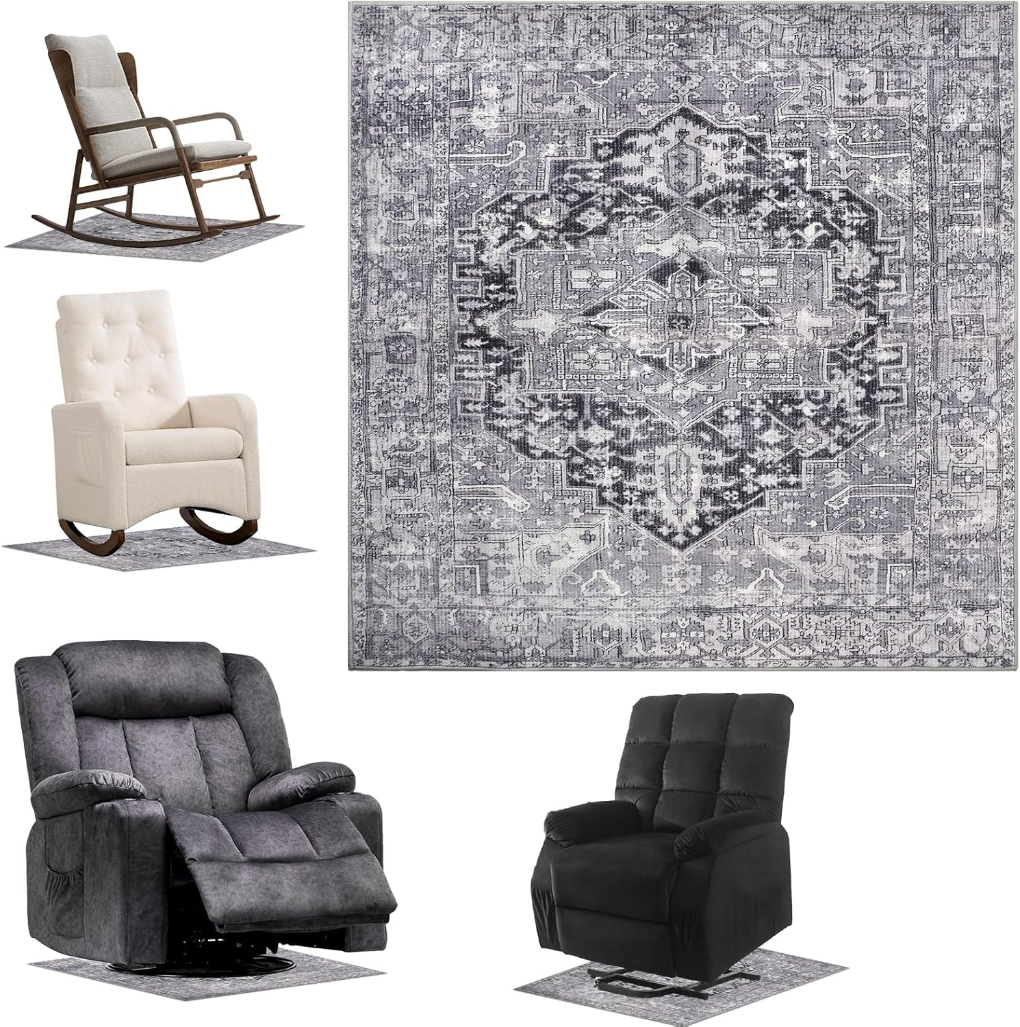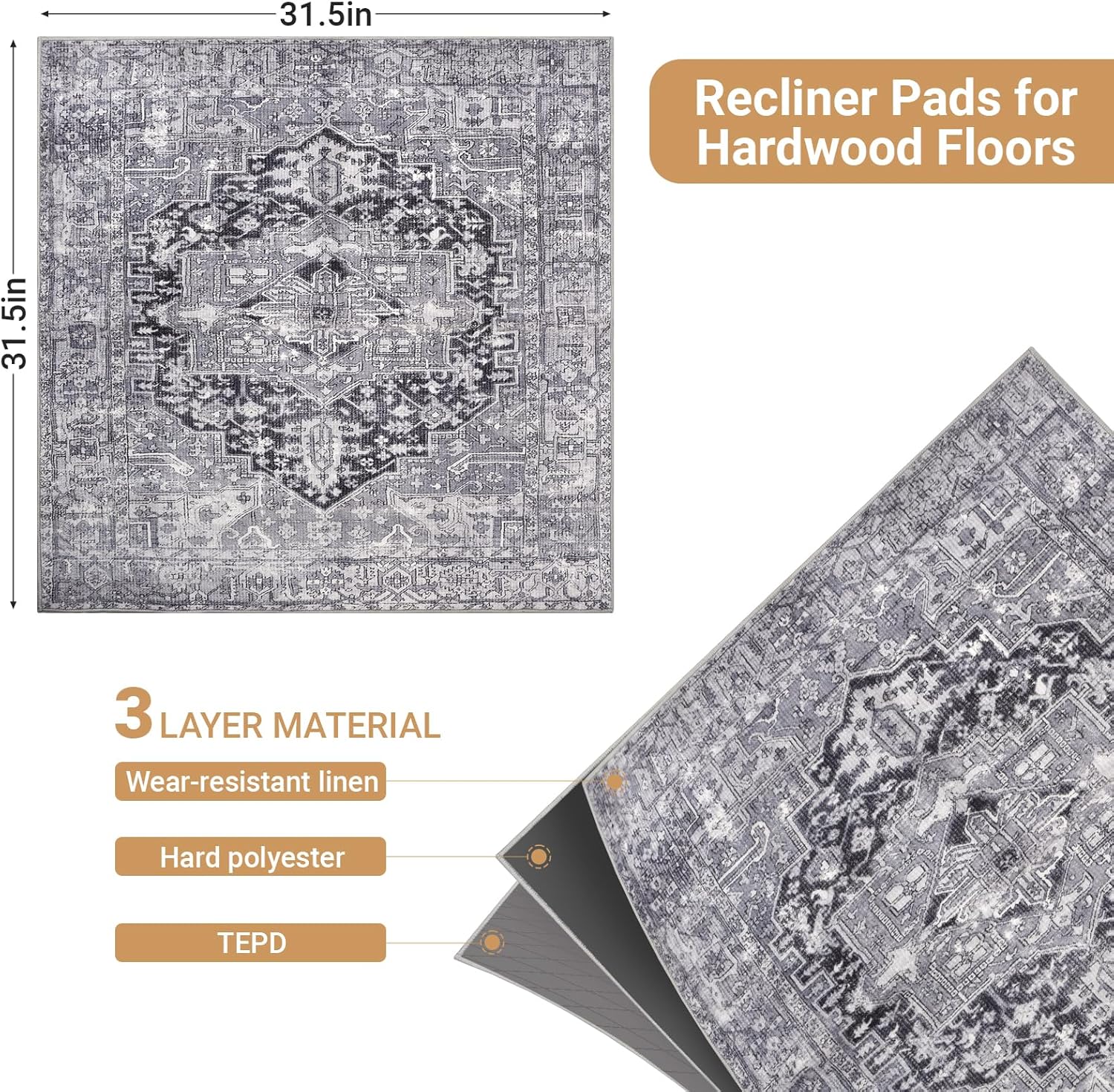 - UNDER CHAIR FLOOR PROTECTION PADS: Recliner furniture guard pads are made wear-resistant of Cashmere imitation that protects floors from scratches, It also prevents disturbing crashing noises. Suitable for Hardwood Floors, Carpets, Marble And Concrete. swivel rocker recliner mat