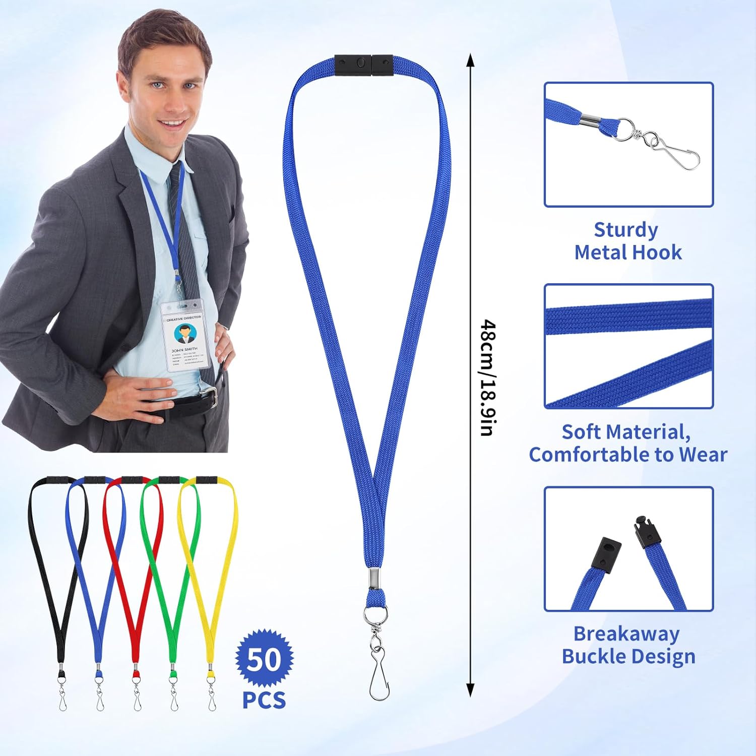 50 Pcs Breakaway Lanyard for Id Badges Lanyards Break Away Safety Lanyard Teacher Volunteer Student Team Lanyards for Keys (5 Colors)