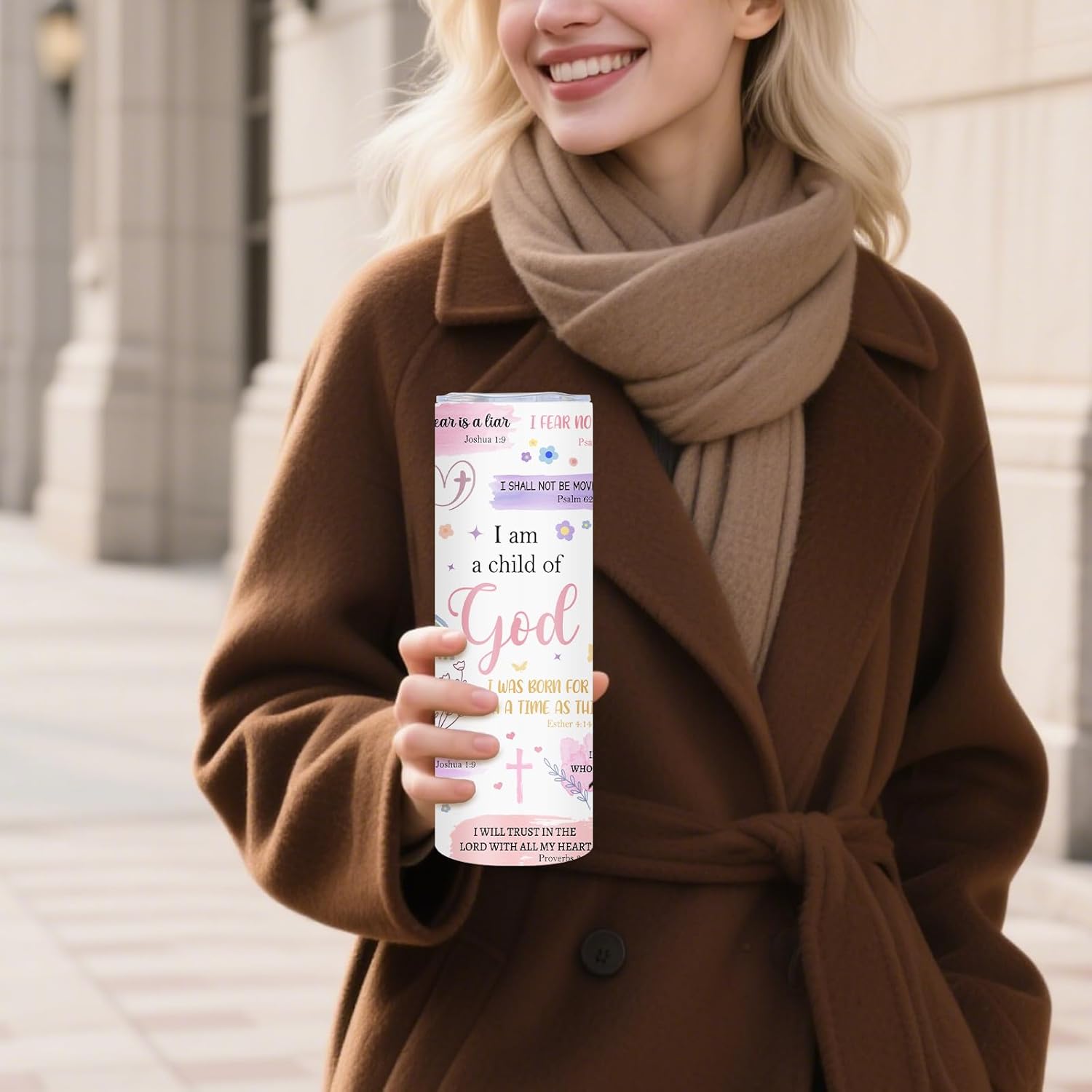 Christian Gifts for Women Tumbler 20oz I Am a Child of God Cup Tumbler, Inspirational Religious Birthday Catholic Spiritual Baptism Confirmation Gifts, Christian Coffee Mugs, Bible Gift for Women