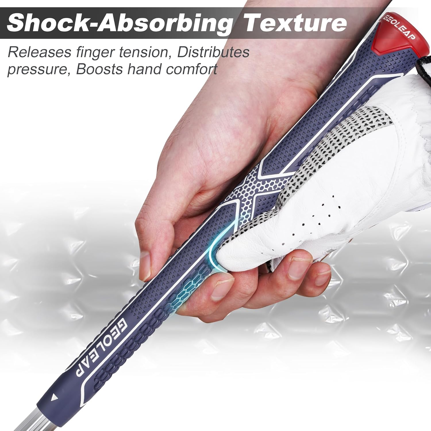 - Edge Cushioning Technology : Experience the next level of comfort with our Edge Cushioning Technology. The perimeter of golf club grips incorporates a seamlessly integrated rubberized layer designed to absorb impact and minimize vibration. This advanced feature enhances grip stability and provides a smoother, more responsive feel, making it ideal for golfers looking to improve their endurance and precision throughout the game.