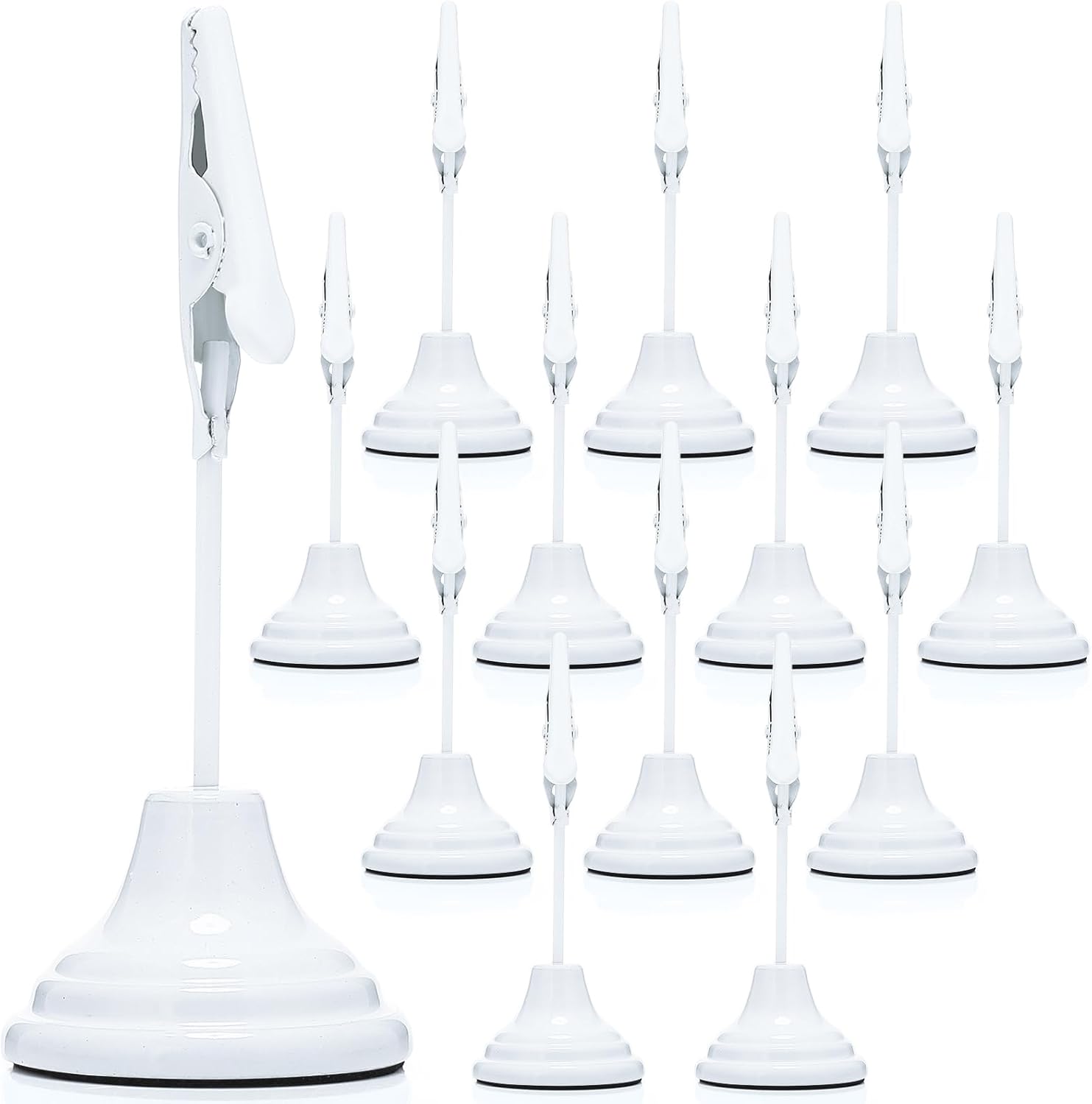 Skyygemm 12 Pcs Table Number Holders 3 Inch Place Card Holder with Alligator Clip Metal Place Card Stands Table Sign for Photos, Food Signs, Birthdays, Weddings (White)