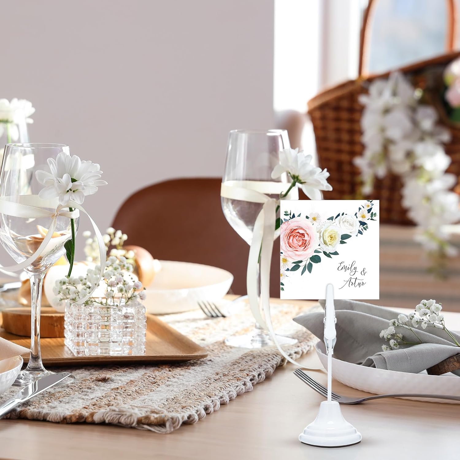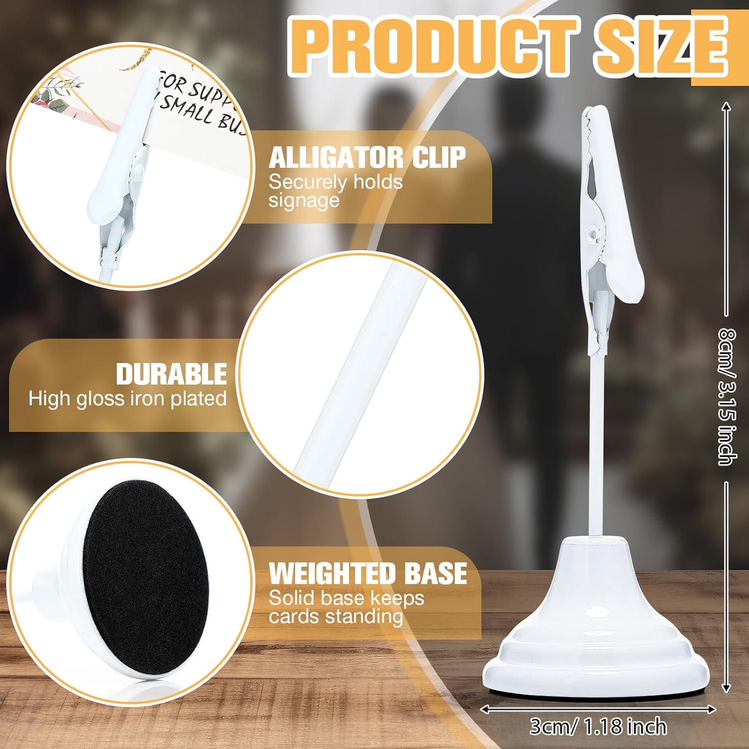 - Quality Material and Ideal Size: our place card holders are robustly built with iron that offers long term durability and endurance; With a noticeable size of 1.18 x 3.15 inches/ 3 x 8 cm each, these white table number holders are impossible to miss and provide ample space to showcase your cards, pictures, or signs