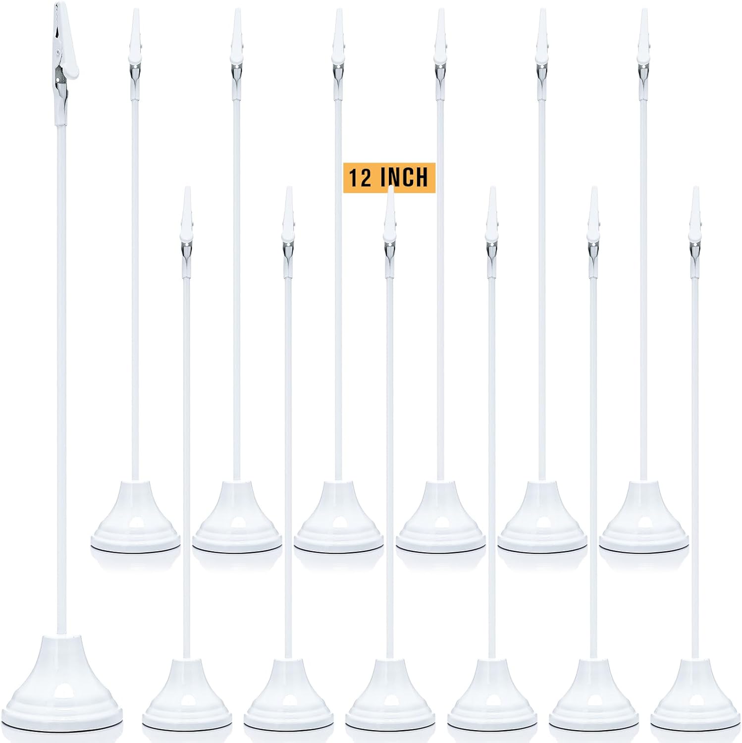 Skyygemm 12 Pcs Table Number Holders 12 Inch Place Card Holder with Alligator Clip Metal Place Card Stands Table Sign for Photos, Food Signs, Birthdays, Weddings(White)