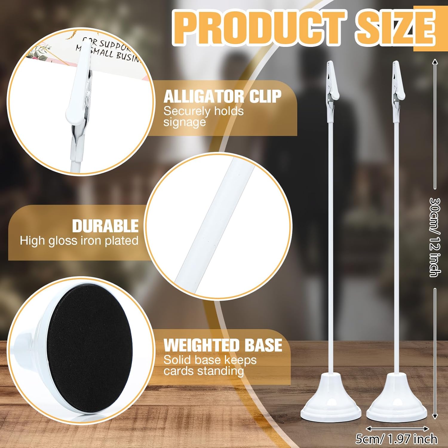 - Quality Material and Ideal Size: our place card holders are robustly built with iron that offers long term durability and endurance; With a noticeable size of 12 inches/ 30 cm each, these white table number holders are impossible to miss and provide ample space to showcase your cards, pictures, or signs