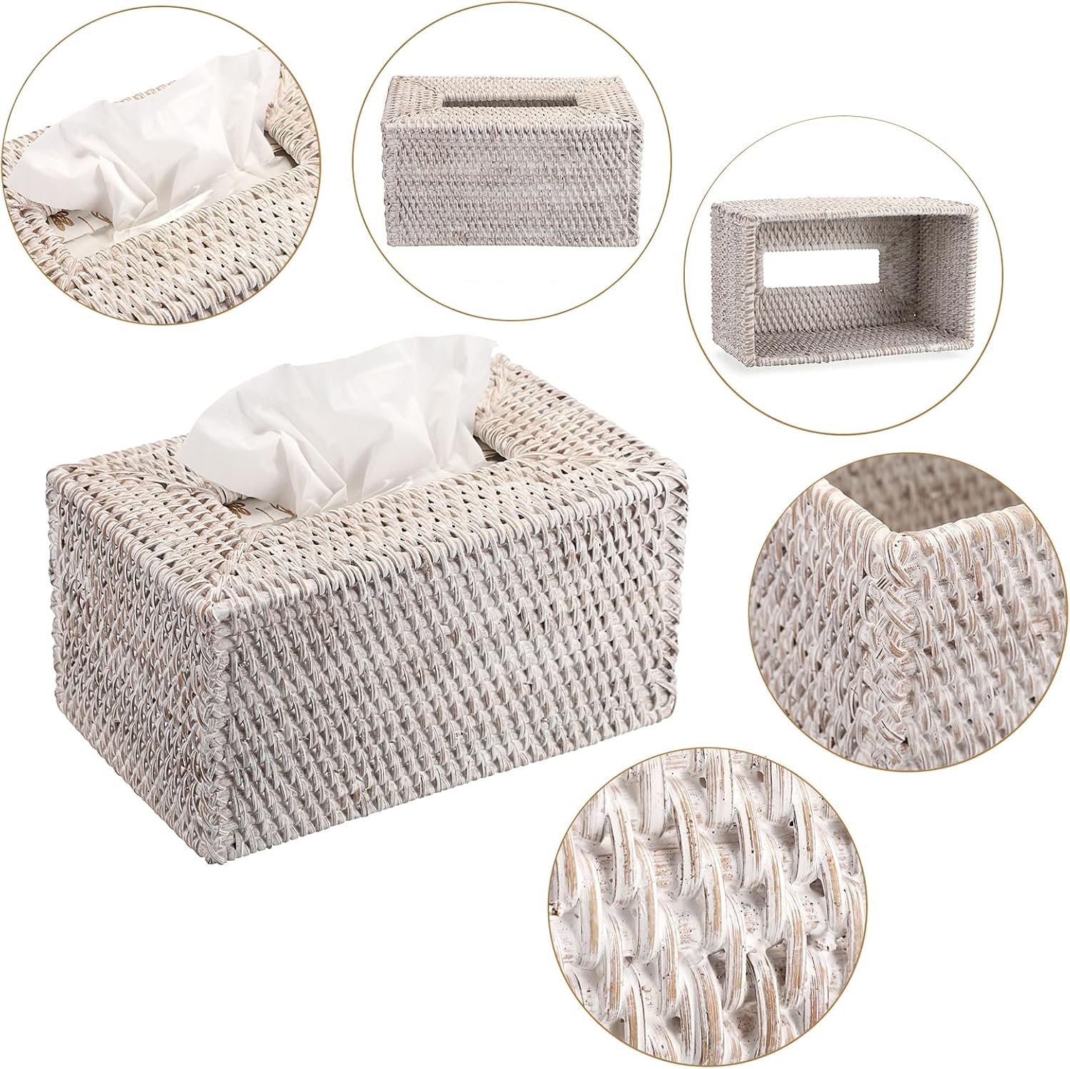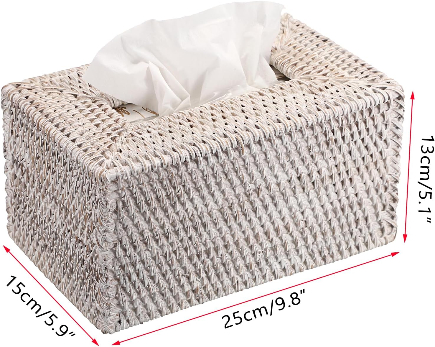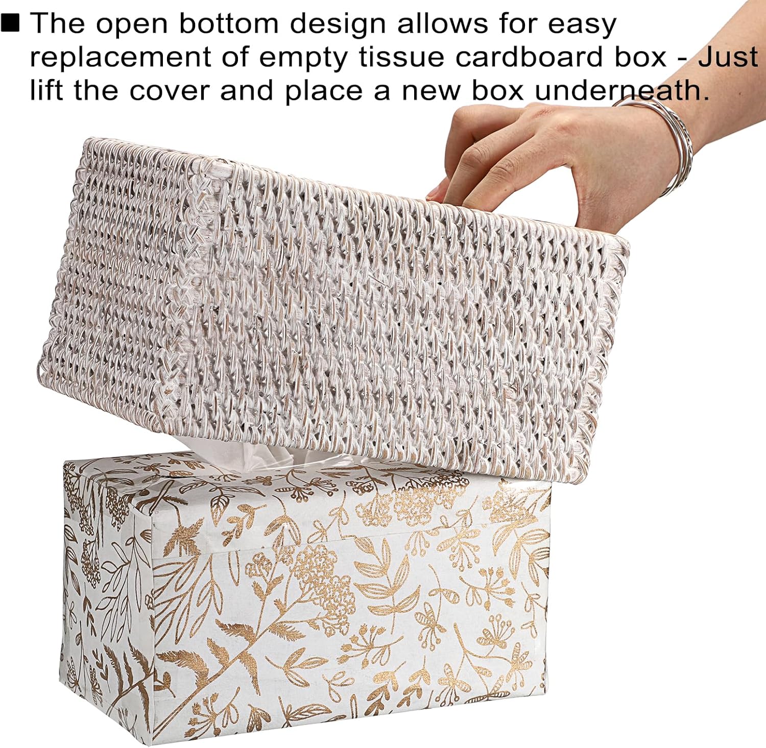 Sumnacon Tissue Box Cover Large Rectangle Tissue Box Rattan Tissue Box Holder,Wicker Decorative Tissue Holder for Bathroom Toilet Living Room Kitchen Office Table Desk,Whitewash