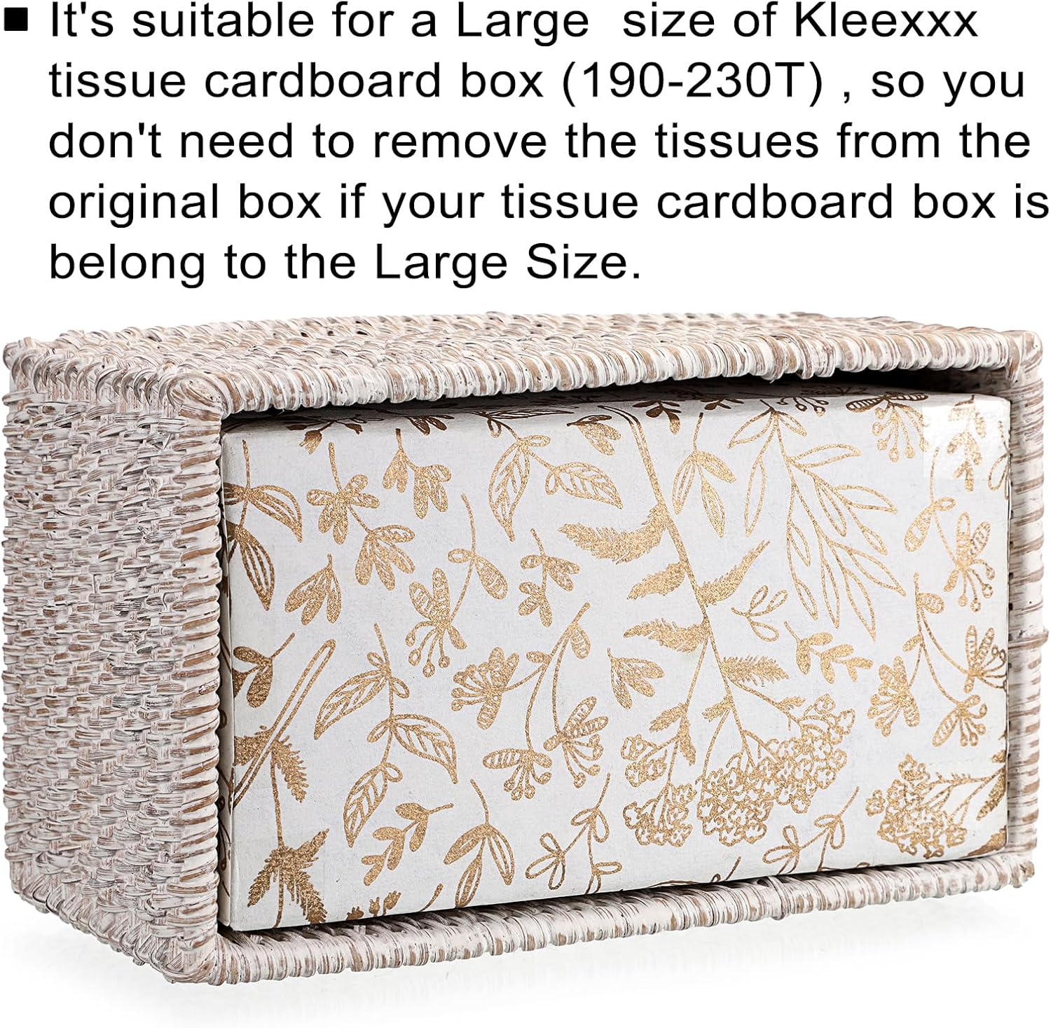 - Notice - Our rectangle tissue box cover is suitable for a Medium size(190-230 Sheet) of Kleexxx tissue cardboard, so you don't need to remove the tissues from the cardboard if your tissue box is belong to the Medium Size; Please kindly make sure your tissue cardboard size before purchase.