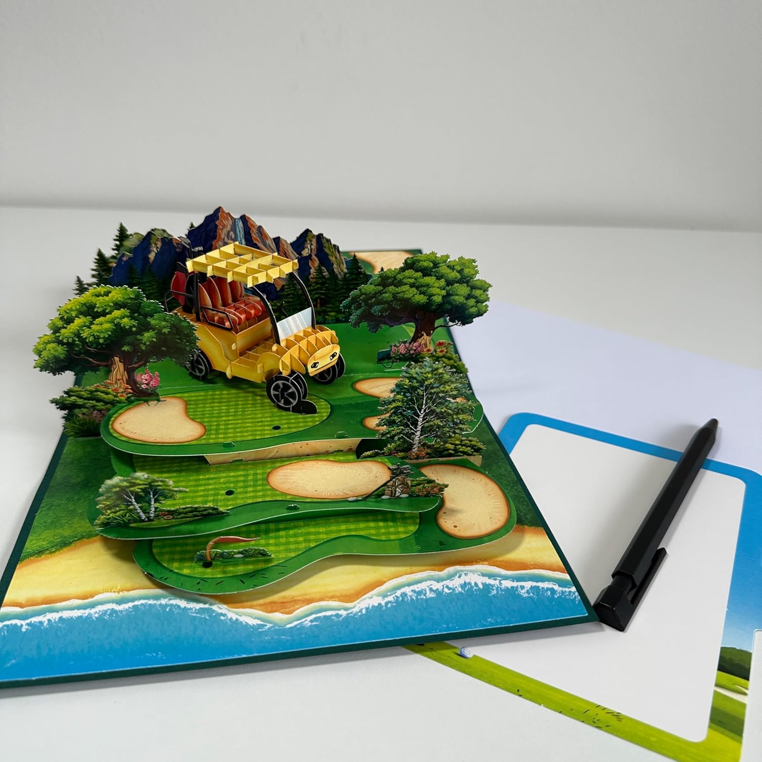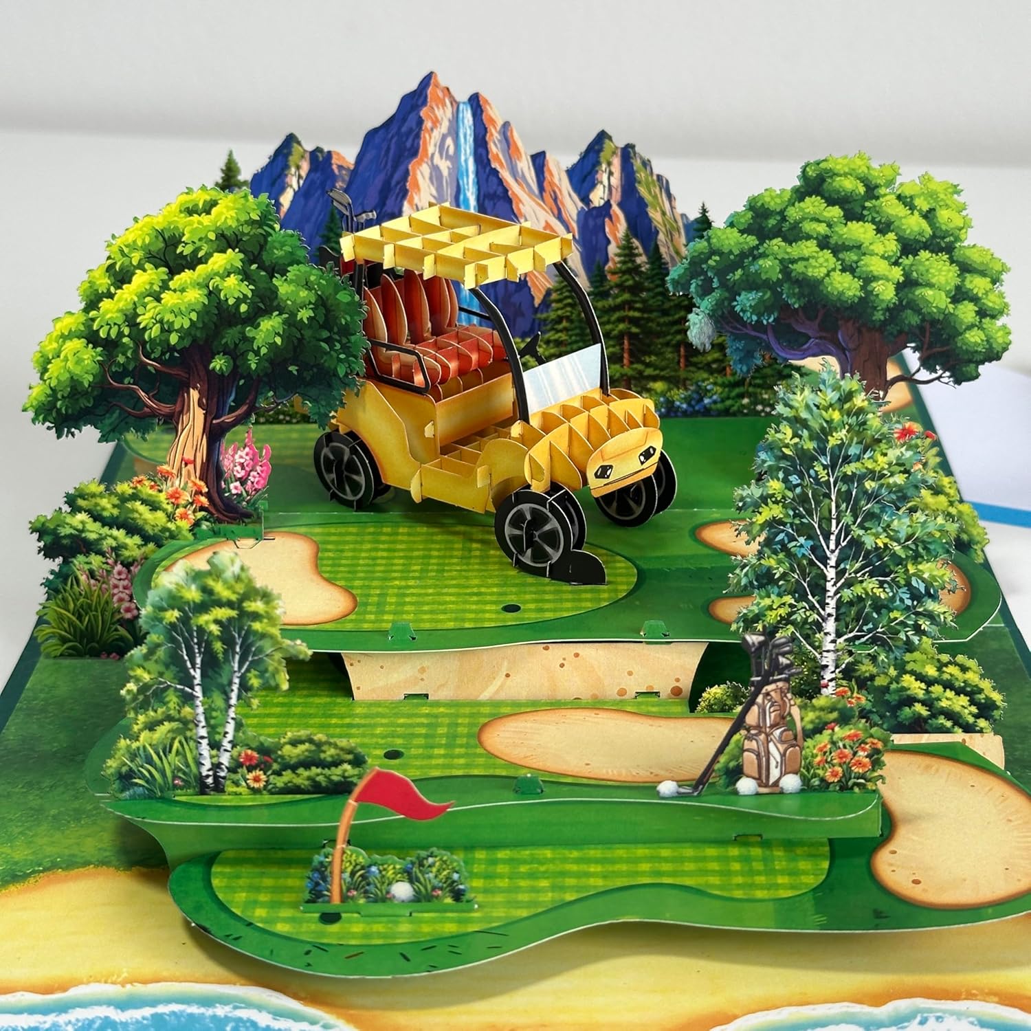 Pop Up Greeting Card Golf Cart Course Field Tournament Birthday Thank You Anniversary Holiday for Him Husband Boyfriend Adventure Outdoor Sport Vacation