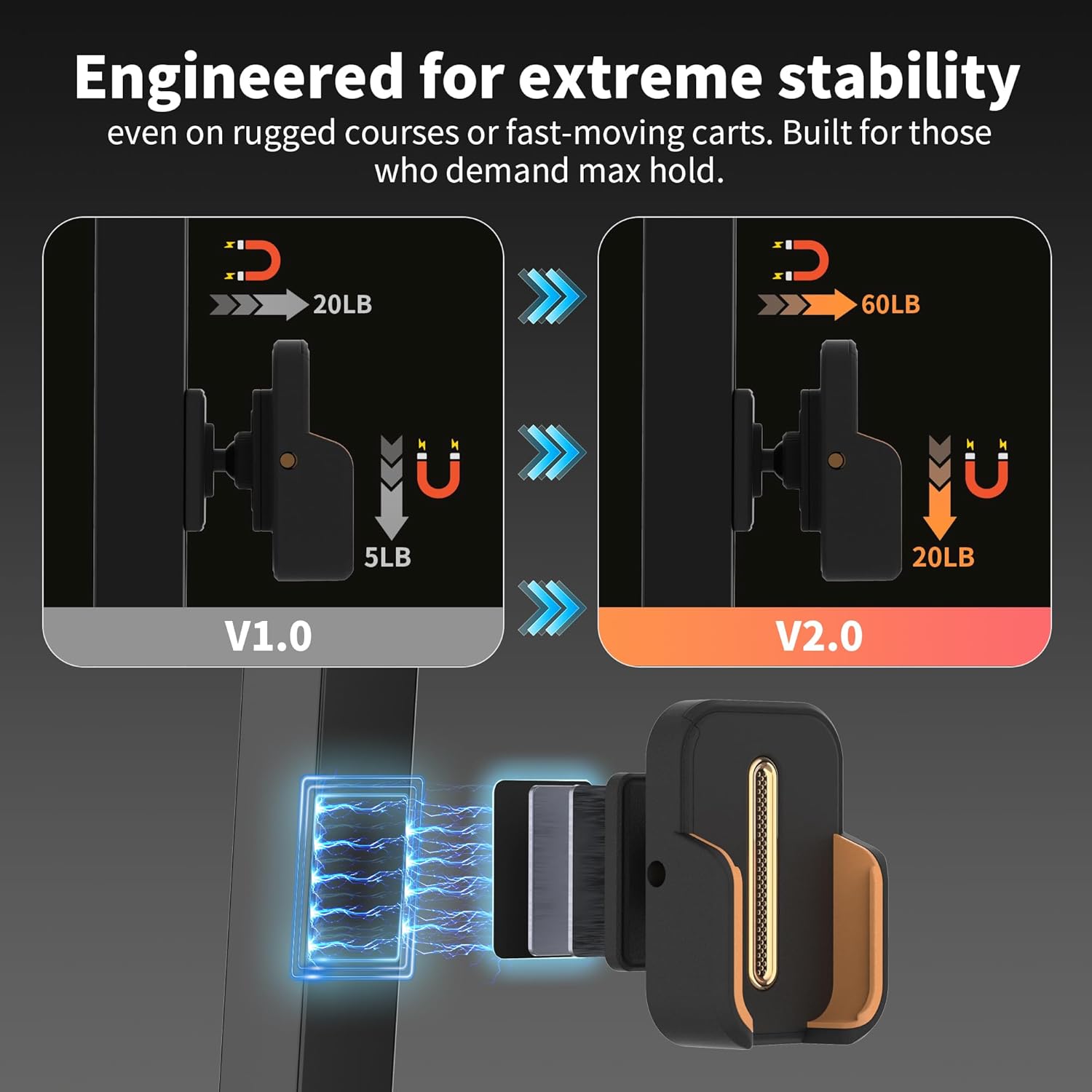 - 🧲 Ultra-Strong Magnetic Hold – Now Fully Upgraded! Built with premium N52 neodymium magnets, this 2025 upgraded model delivers a significantly stronger hold than last year’s version. Whether you're cruising over bumpy cart paths or rough terrain, your phone stays locked in place—no slipping, no wobbling, no worries.