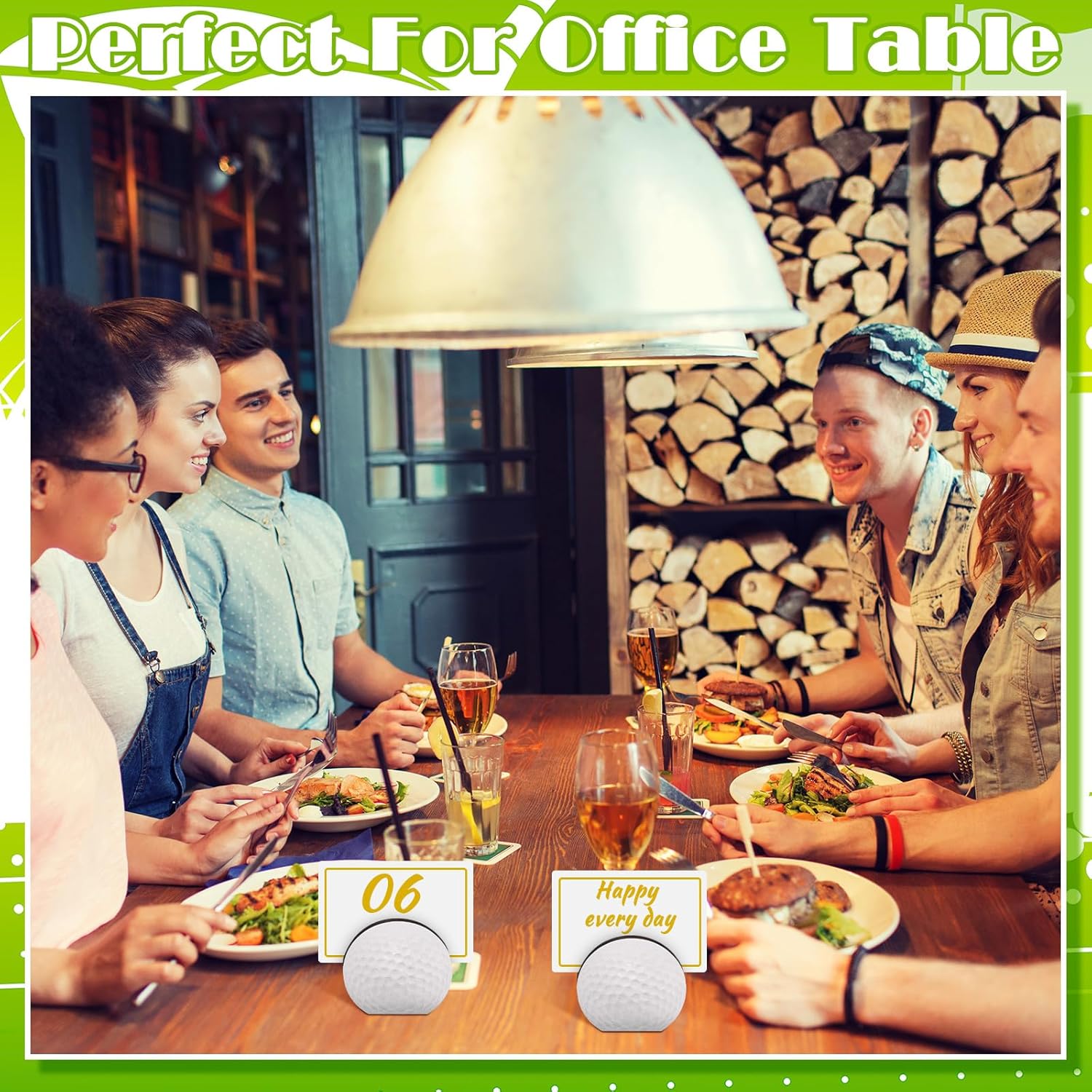 - Golf Centerpieces Place Card Holder Bulk: you will receive 24 golf ball shaped base place card holders to meet all your event needs; Whether you are hosting a Masters themed party or a golf gender reveal party, these golf themed party decorations serve as ideal picture holders and photo holders for centerpieces, perfect for table place card holders