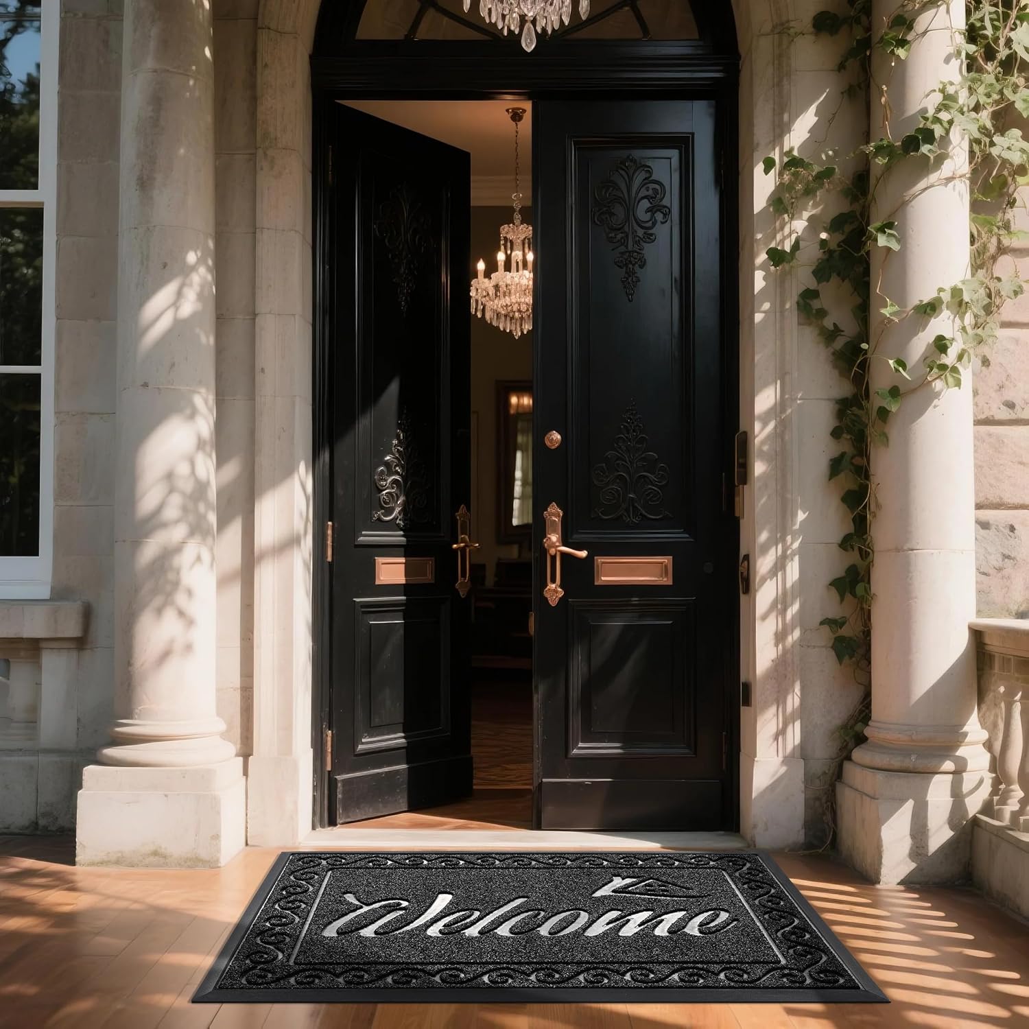 Yimobra Welcome Mat, Heavy Duty Sturdy Door Mats for Home Entrance Outdoor Indoor, Front Doormat for Outside Patio Floor Entry Porch Garage Office, Waterproof, Low Profile, 60 x 36, Black