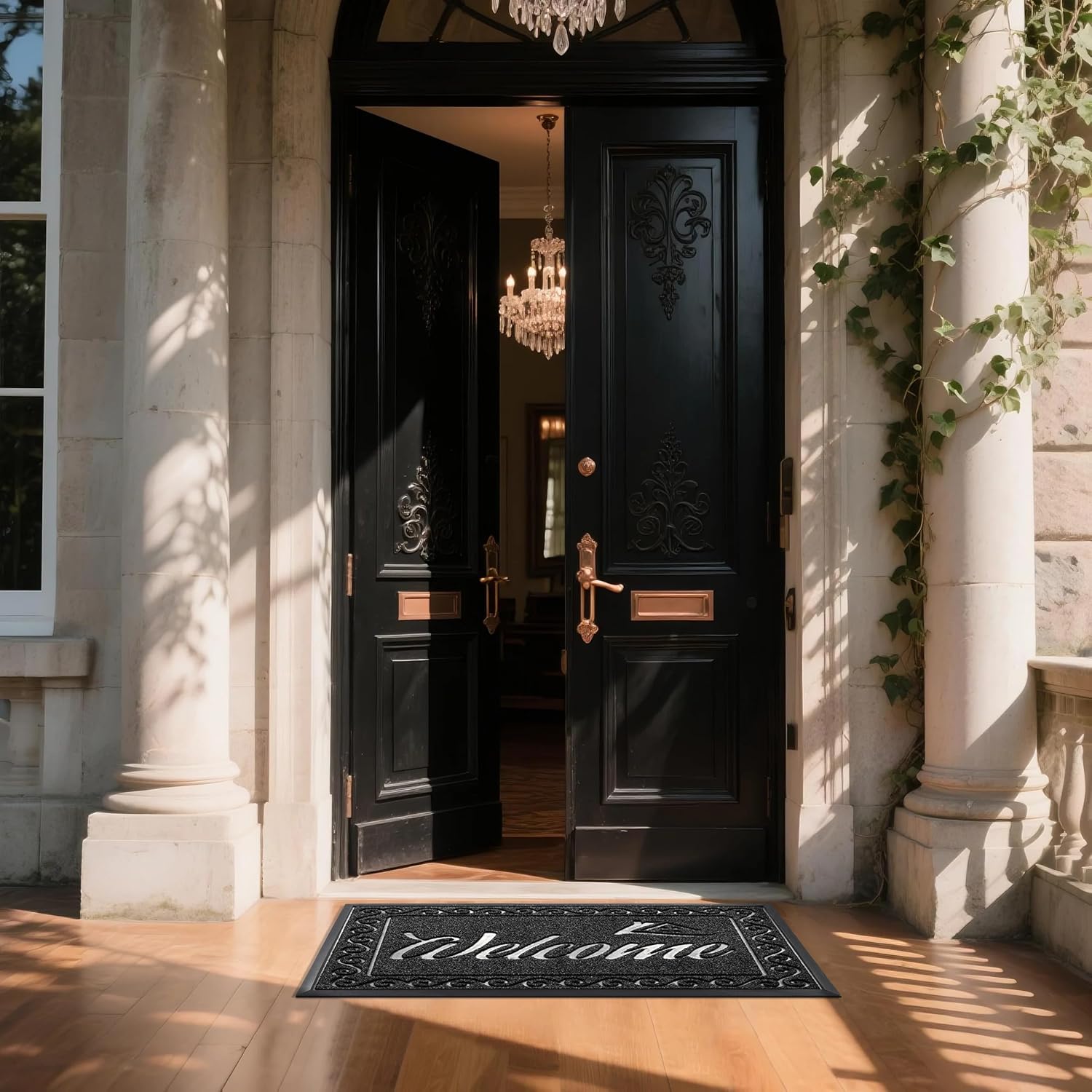 Yimobra Welcome Mat, Heavy Duty Sturdy Door Mats for Home Entrance Outdoor Indoor, Front Doormat for Outside Patio Floor Entry Porch Garage Office, Waterproof, Low Profile, 47 x 24, Black