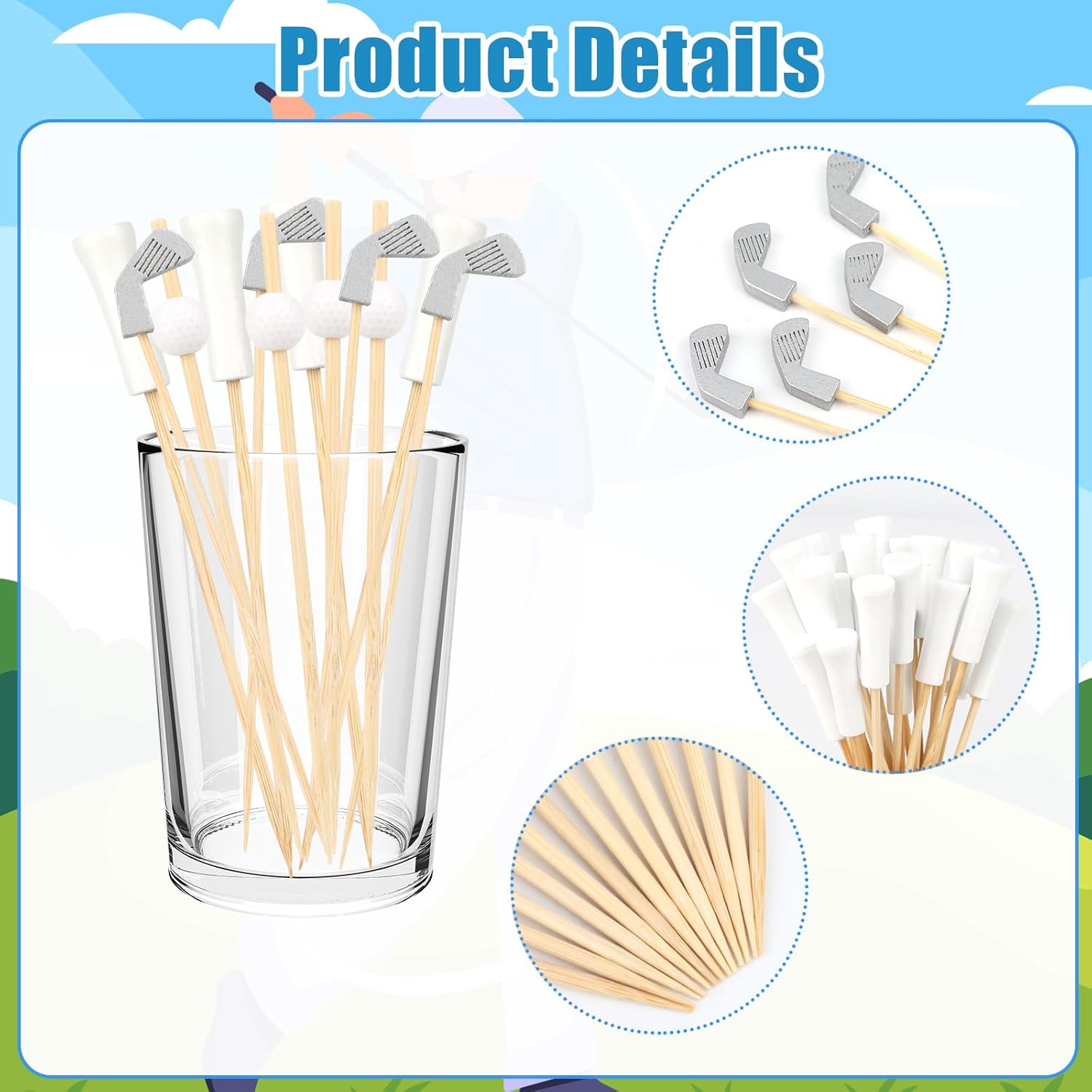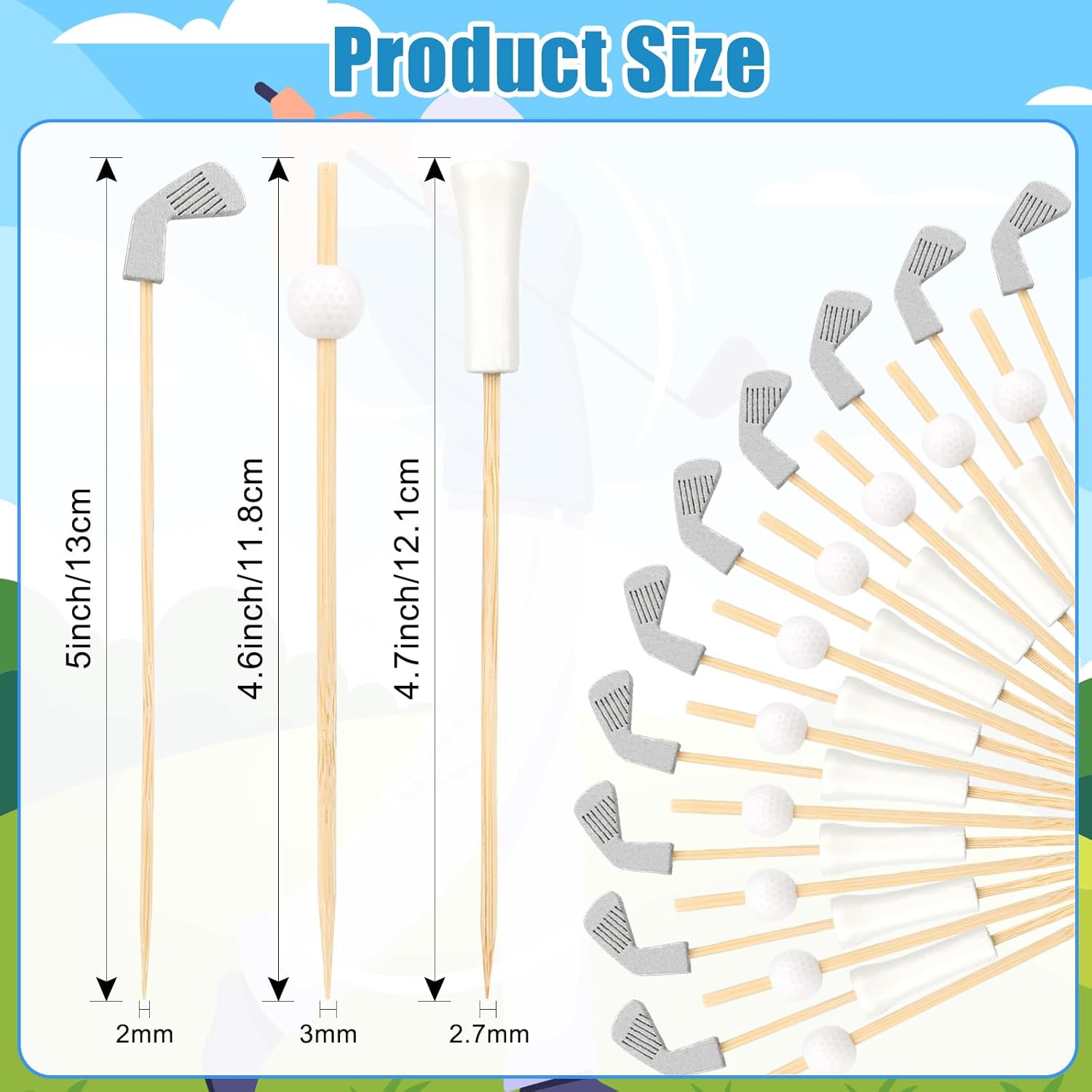 - Golf Toothpicks:You'll get 300 disposable cocktail picks about 4.7 inches, 100 toothpicks topped with golf balls,100 toothpicks topped with golf tee,and 100 toothpicks topped with golf rackets, enough to meet your every need.