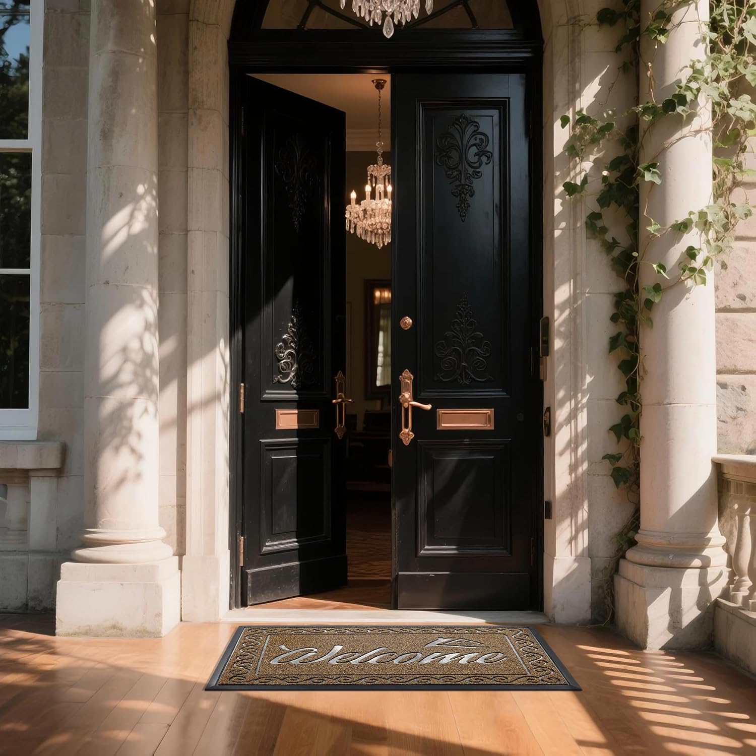 Yimobra Welcome Mat, Heavy Duty Sturdy Door Mats for Home Entrance Outdoor Indoor, Front Doormat for Outside Patio Floor Entry Porch Garage Office, Waterproof, Low Profile, 47 x 24, Beige Brown