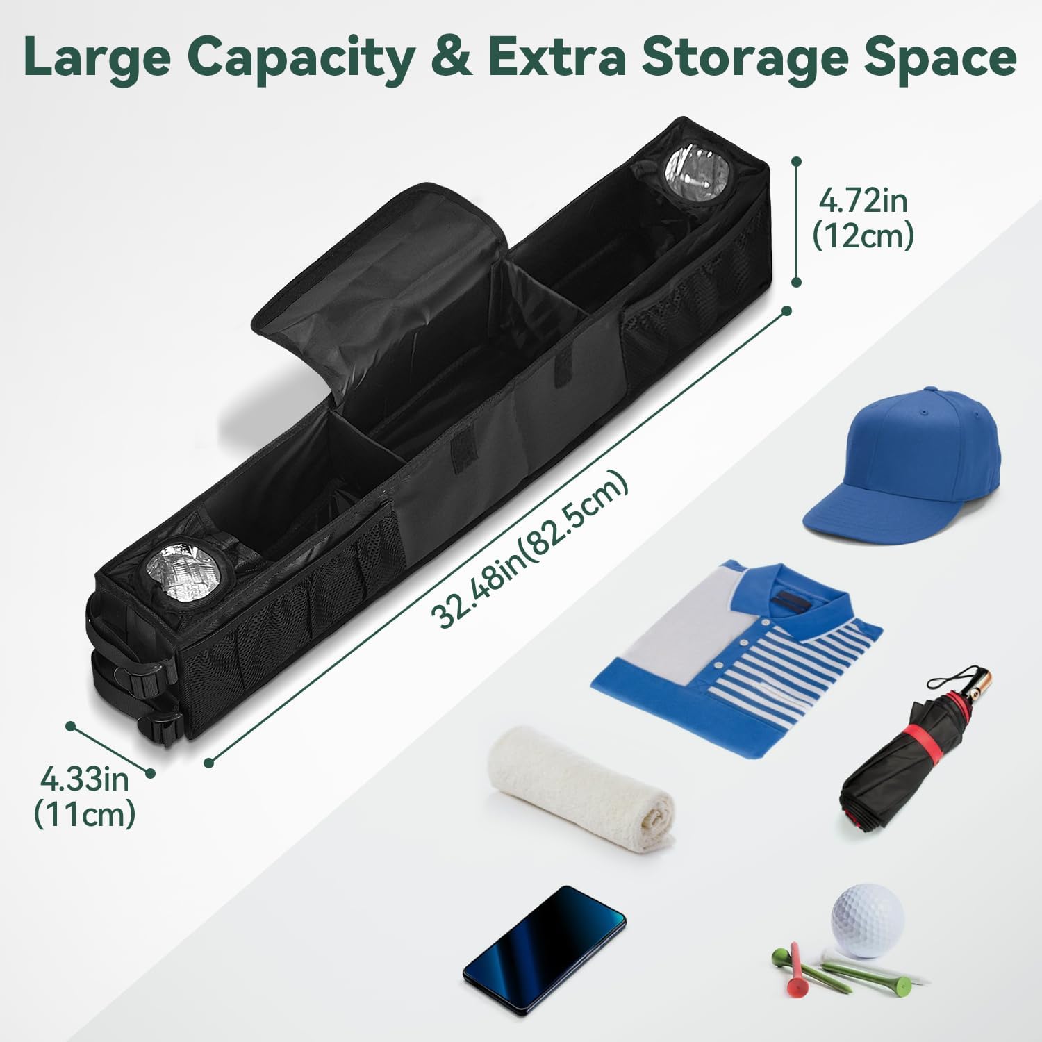 - 【Enhanced Storage Capacity】Features a 10.9-liter capacity, equipped with two internal Velcro dividers to create three separate compartments, two insulated cup holders and two accessory pockets. The clever design keeps your golf balls, water bottles, towels, cell phones and other items neatly organized.