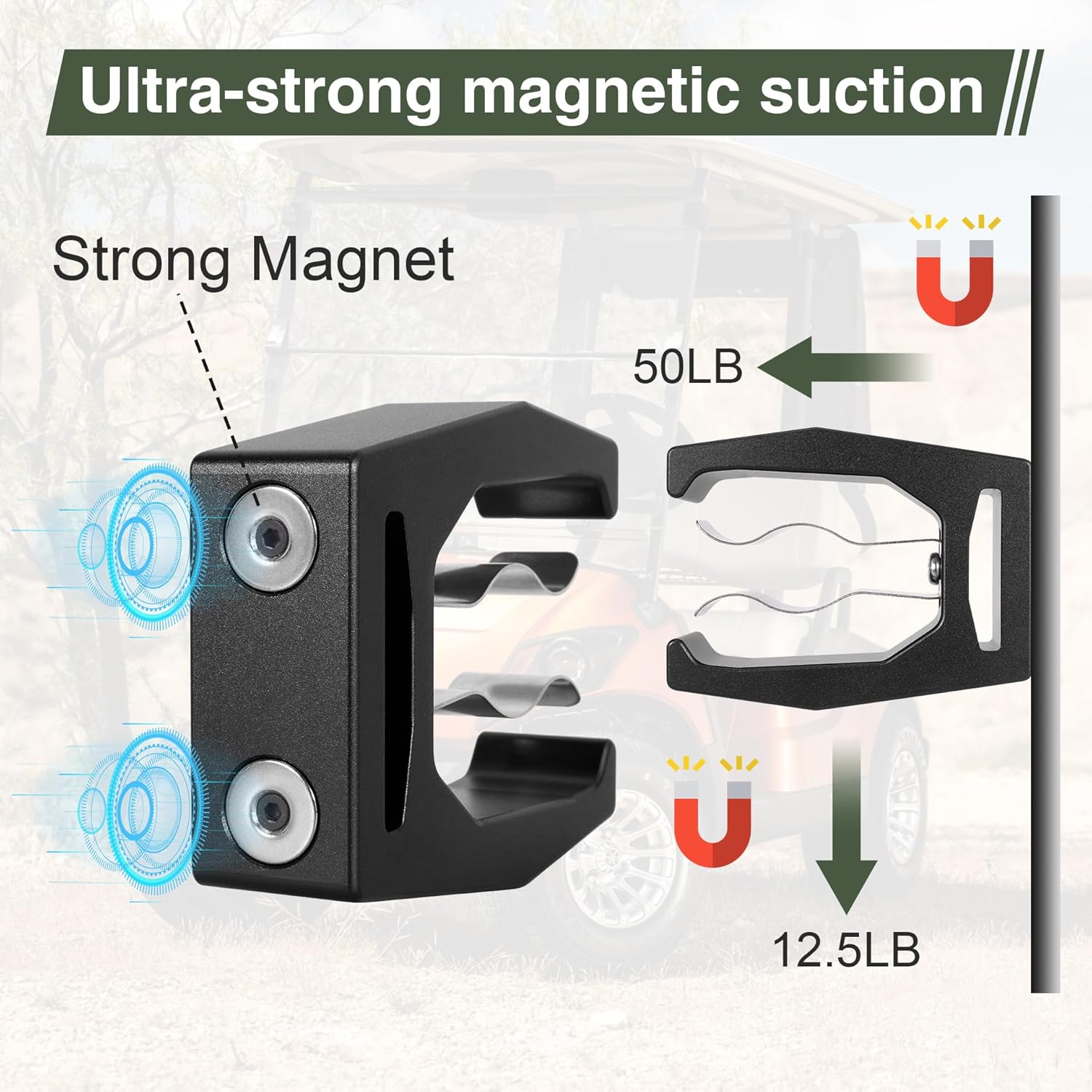 - Strong Magnetic Attachment : The golf cart mount features a strong magnet that provides 50 pounds of pulling force to securely attach to any metal surface on your golf cart or golf club. This strong magnetic clamp ensures that you always have easy access to your items while you play.