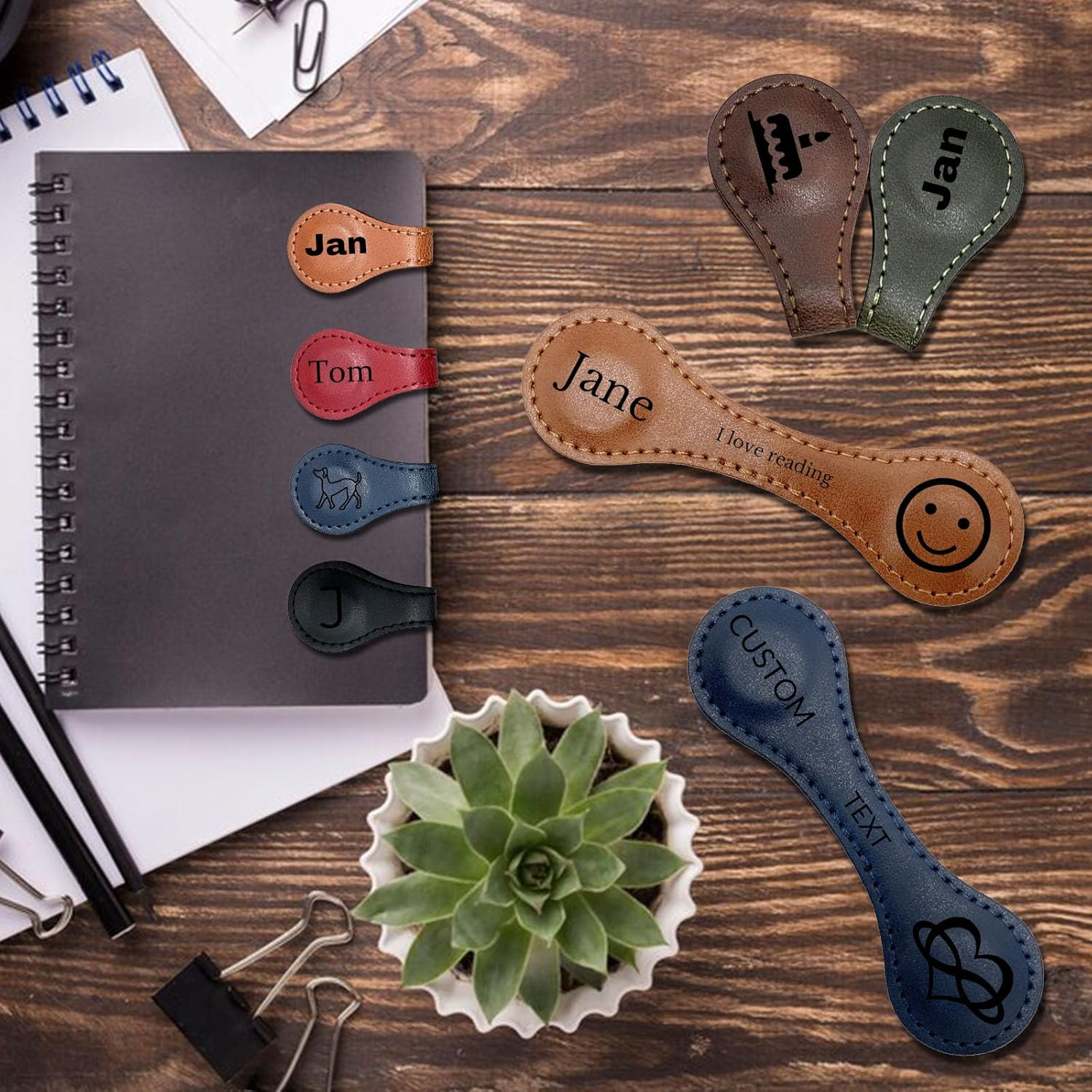 Customized Leather Magnetic Bookmarks for Man Women Personalized Engraved Text Book Marker Clips Gift for Book Lover Kids Readers
