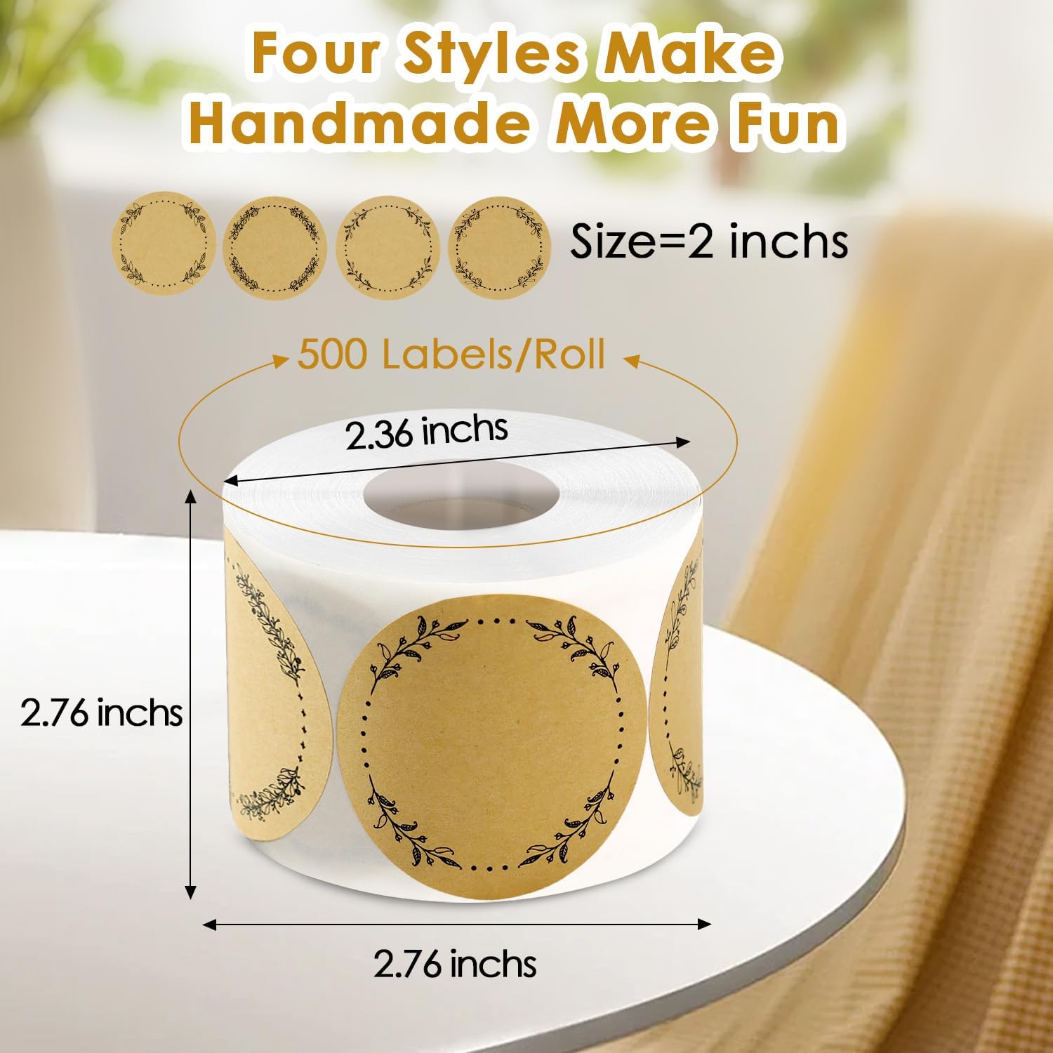 500pcs Canning Stickers Jam and Jelly Jar Labels, Gift Tags 4 Different Wreath Designs, All-Purpose Labels for Mason Jars/Bottle/Name Tags and More(2" Round)