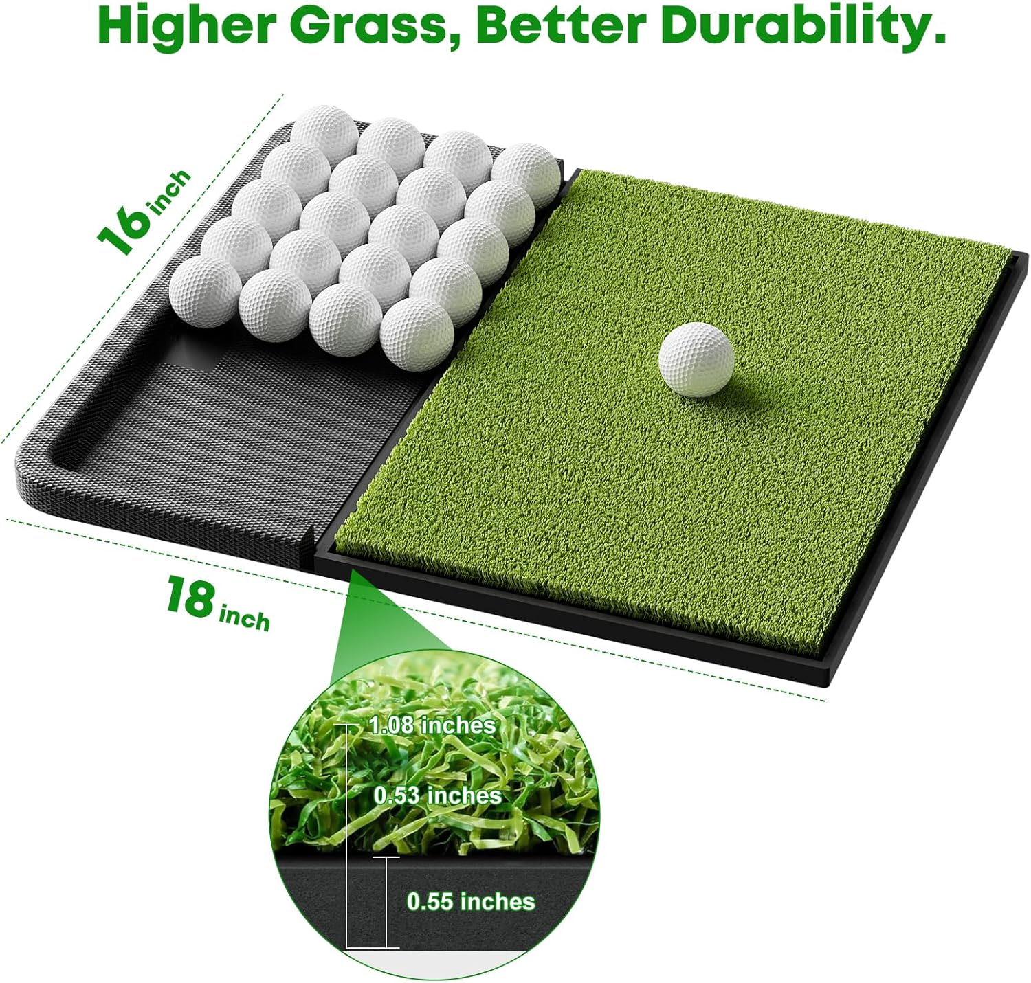 - 1. Unique Built-In Ball Tray for Efficient Practice - Unlike ordinary mats, ours features a built-in tray that neatly holds up at least 32 balls—keeping them within easy reach so you can focus on your swing, not chasing golf balls.