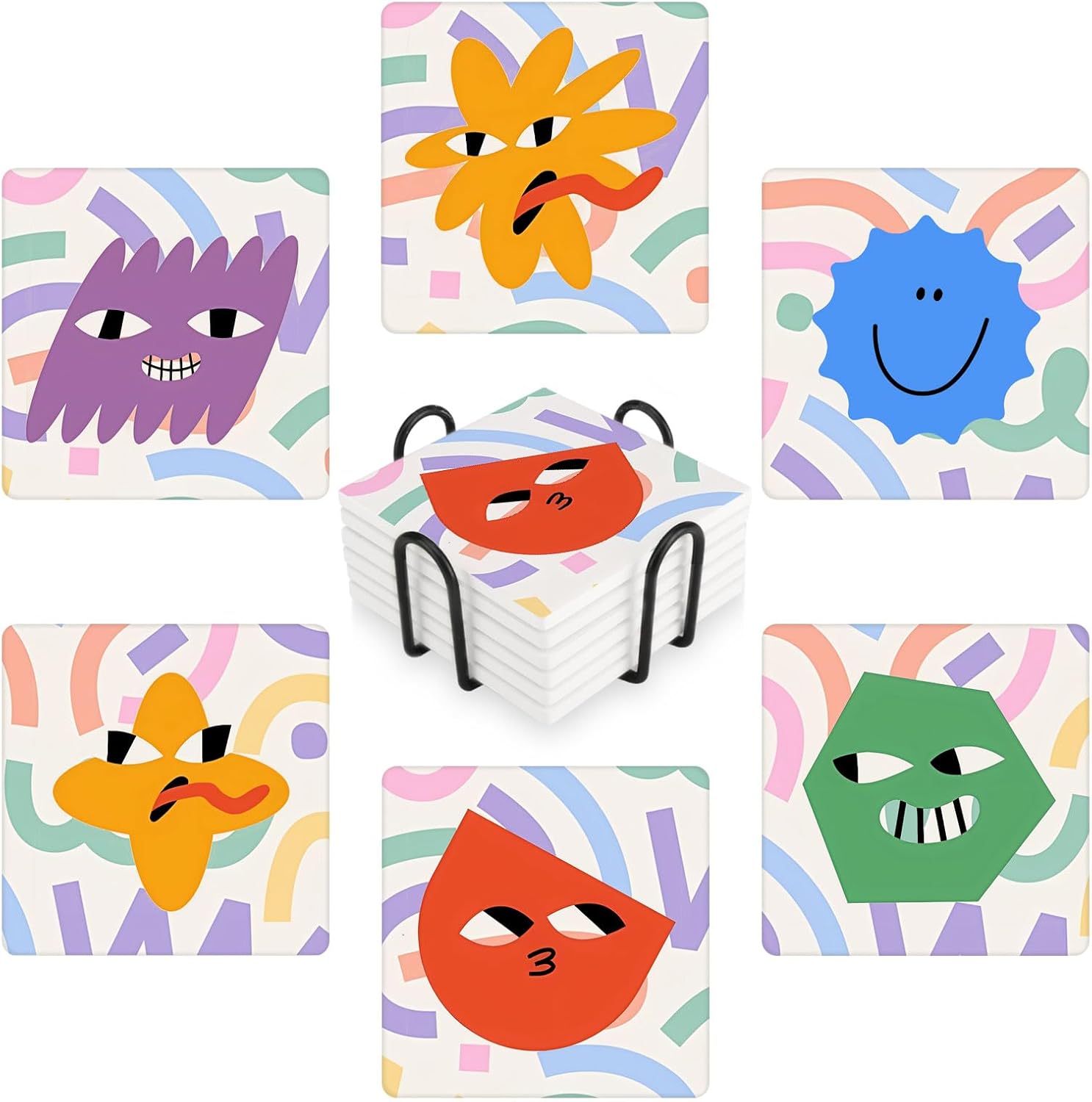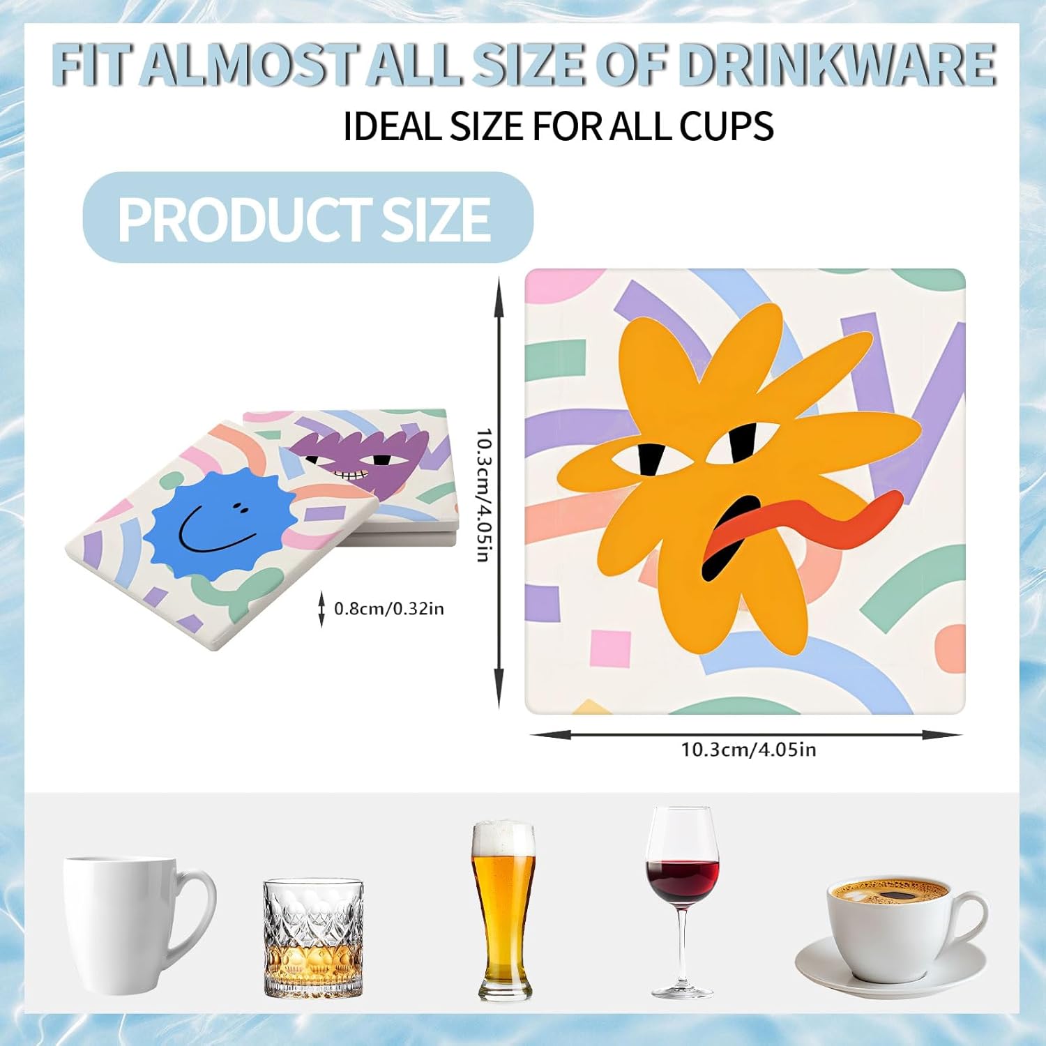 - Nice Pattern Design - Our square ceramic coasters showcase interesting designs in funny and interesting cartoon alien patterns, allowing you to express your personality and unique sense of style. Perfect for enhancing the holiday atmosphere, they make an ideal addition to the dining table decoration.