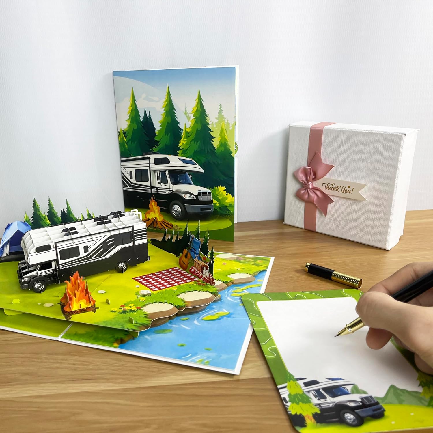 - Intricate 3D Craftsmanship: Designed with impressive detail, the card showcases a classic RV setup with lifelike paper artistry. Measuring 5.9 x 7.9 inches, it creates a memorable display.