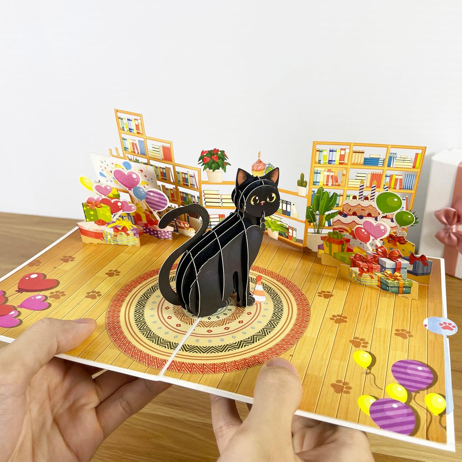 - Mystical Black Cat Design: The Black Cat 3D Popup Card features an enchanting feline silhouette, embodying both elegance and mystery — perfect for cat lovers and those who adore a touch of the supernatural.