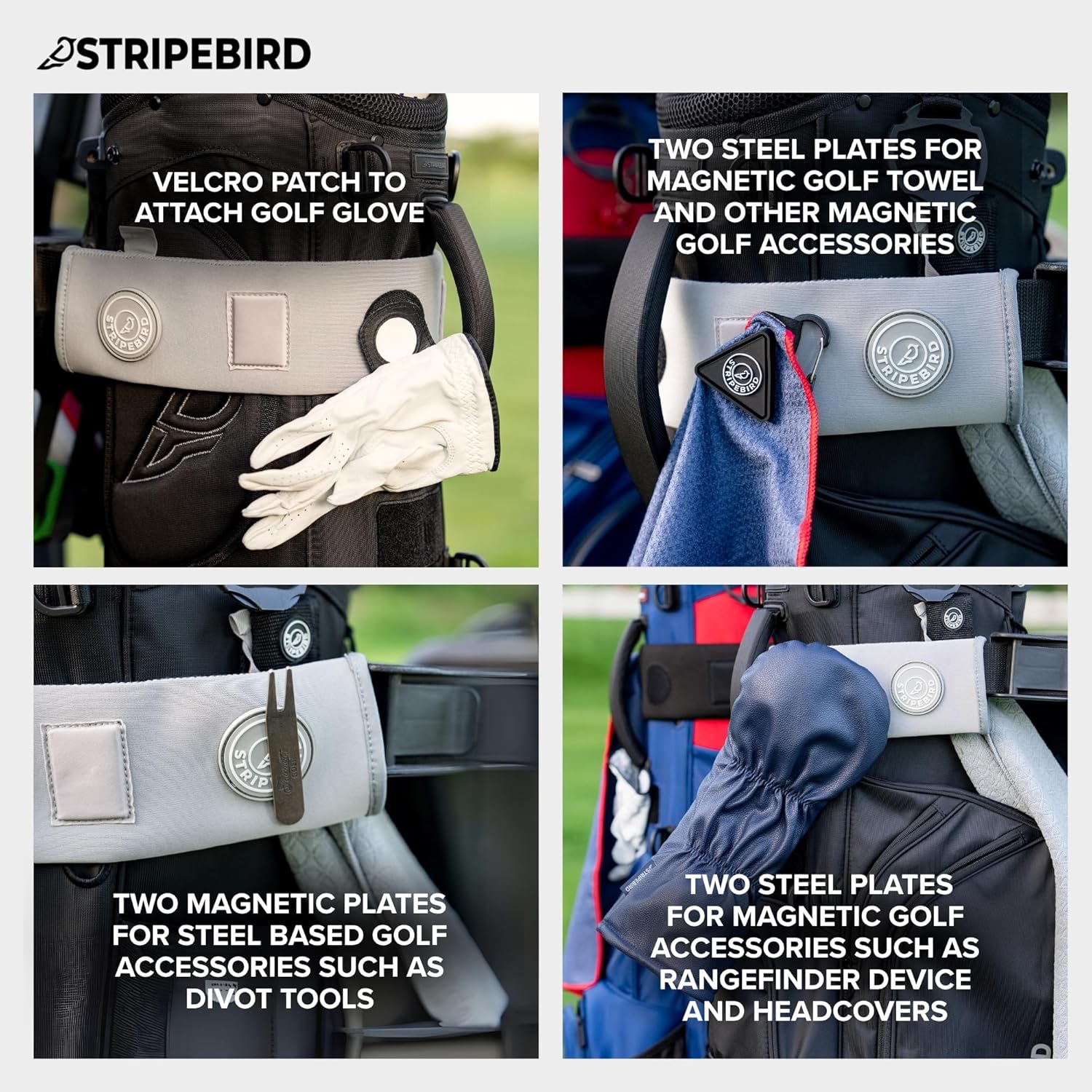 Stripebird - Premium Golf Cart Strap Sleeve Protector - Save Your Golf Bag from Golf Cart Straps - Includes Magnetic and Steel Plate for Magnetic Golf Accessories
