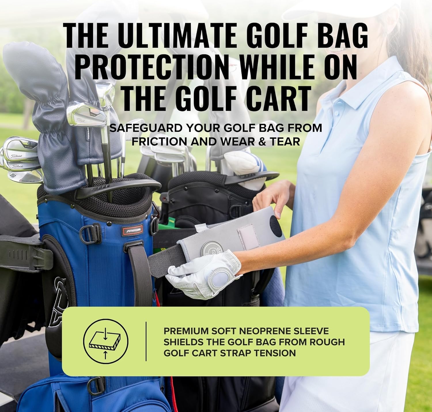 - PREMIUM DURABILITY: The premium soft neoprene construction shields your golf bag from the wear and tear caused by the friction from the rough golf cart straps.