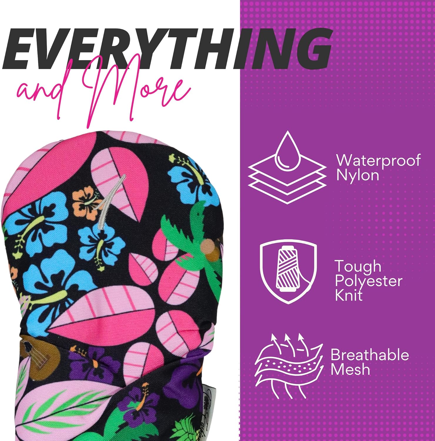 - HEAVY DUTY, WATERPROOF PROTECTION: Crafted from a premium blend of waterproof nylon, polyester knit, and breathable mesh, these ladies golf club covers shield clubs from rain, dew, and everyday wear. A soft velour lining provides extra cushioning to prevent dents, scratches, and damage during transport.
