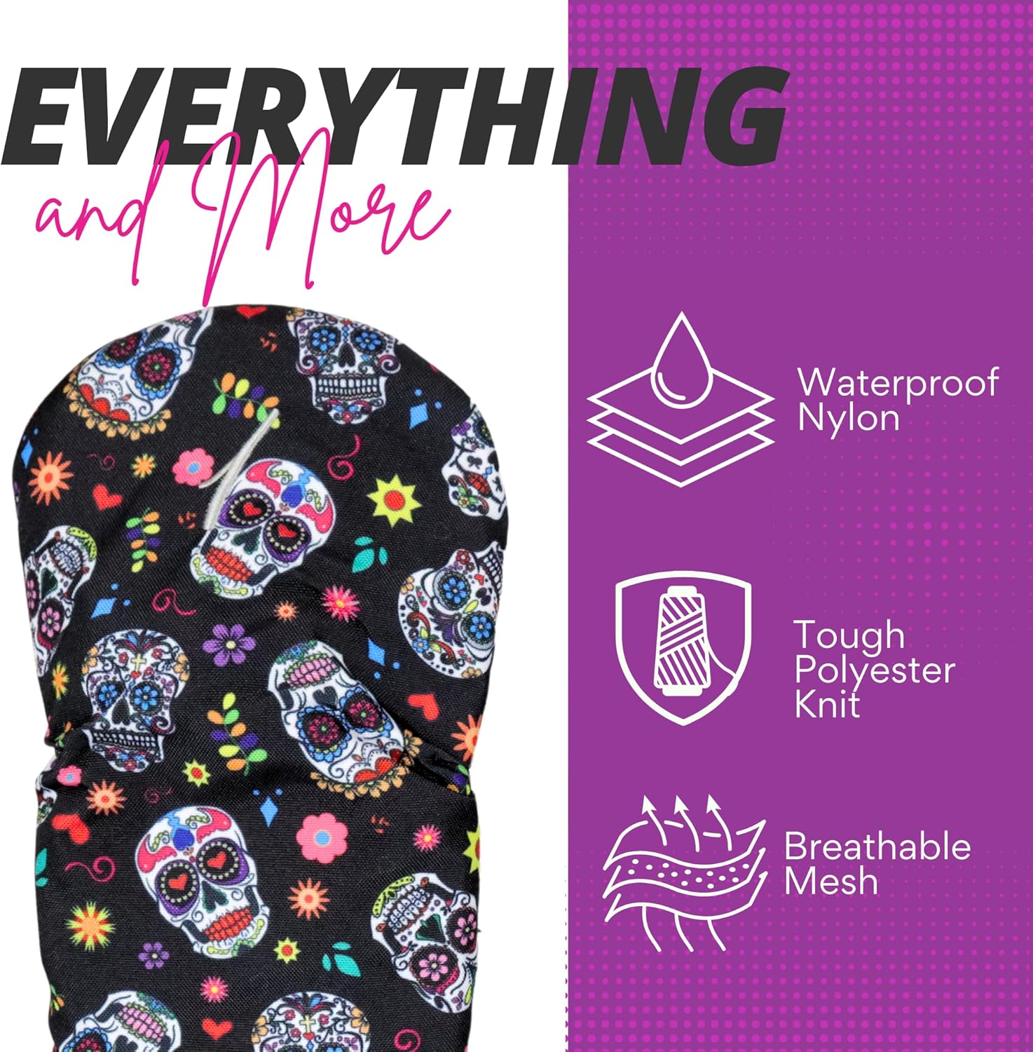 - HEAVY DUTY, WATERPROOF PROTECTION: Crafted from a premium blend of waterproof nylon, polyester knit, and breathable mesh, these ladies golf club covers shield clubs from rain, dew, and everyday wear. A soft velour lining provides extra cushioning to prevent dents, scratches, and damage during transport.