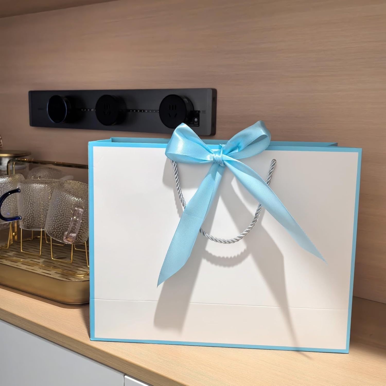 - ăPackage IncludesăYou will receive 12pcs of paper gift bags with handles and paired with blue ribbon for you to tie a beautiful bow. There is no text on the gift bag, you can write your blessing on the bag to express your feelings.