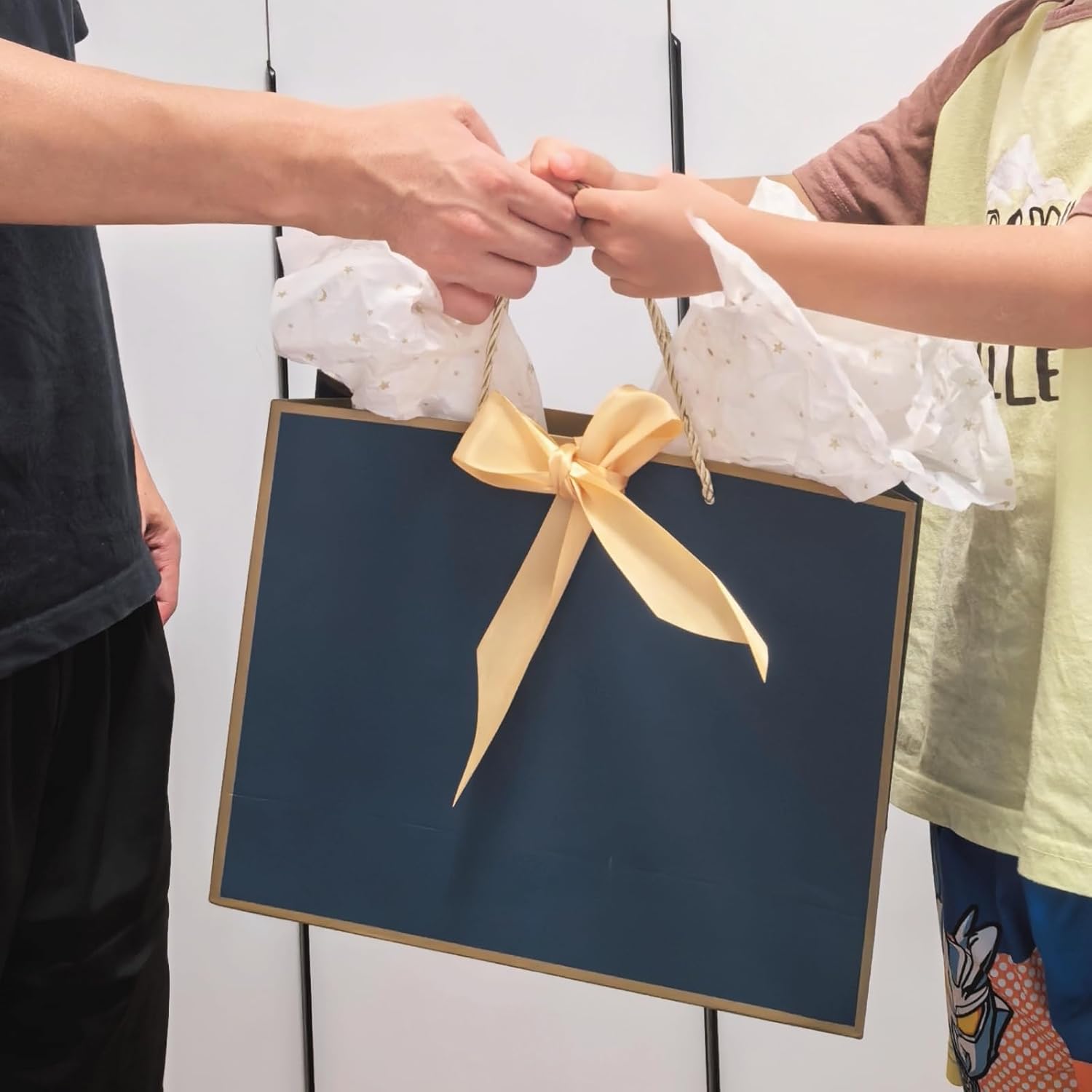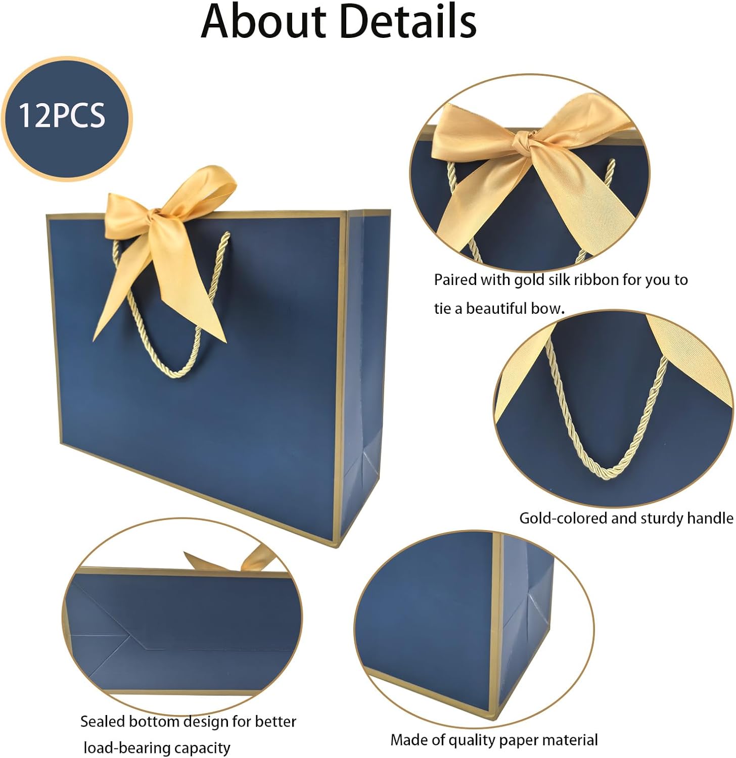 - ăPackage IncludesăYou will receive 12pcs of paper gift bags with handles and paired with gold ribbon for you to tie a beautiful bow. There is no text on the gift bag, you can write your blessing on the bag to express your feelings.