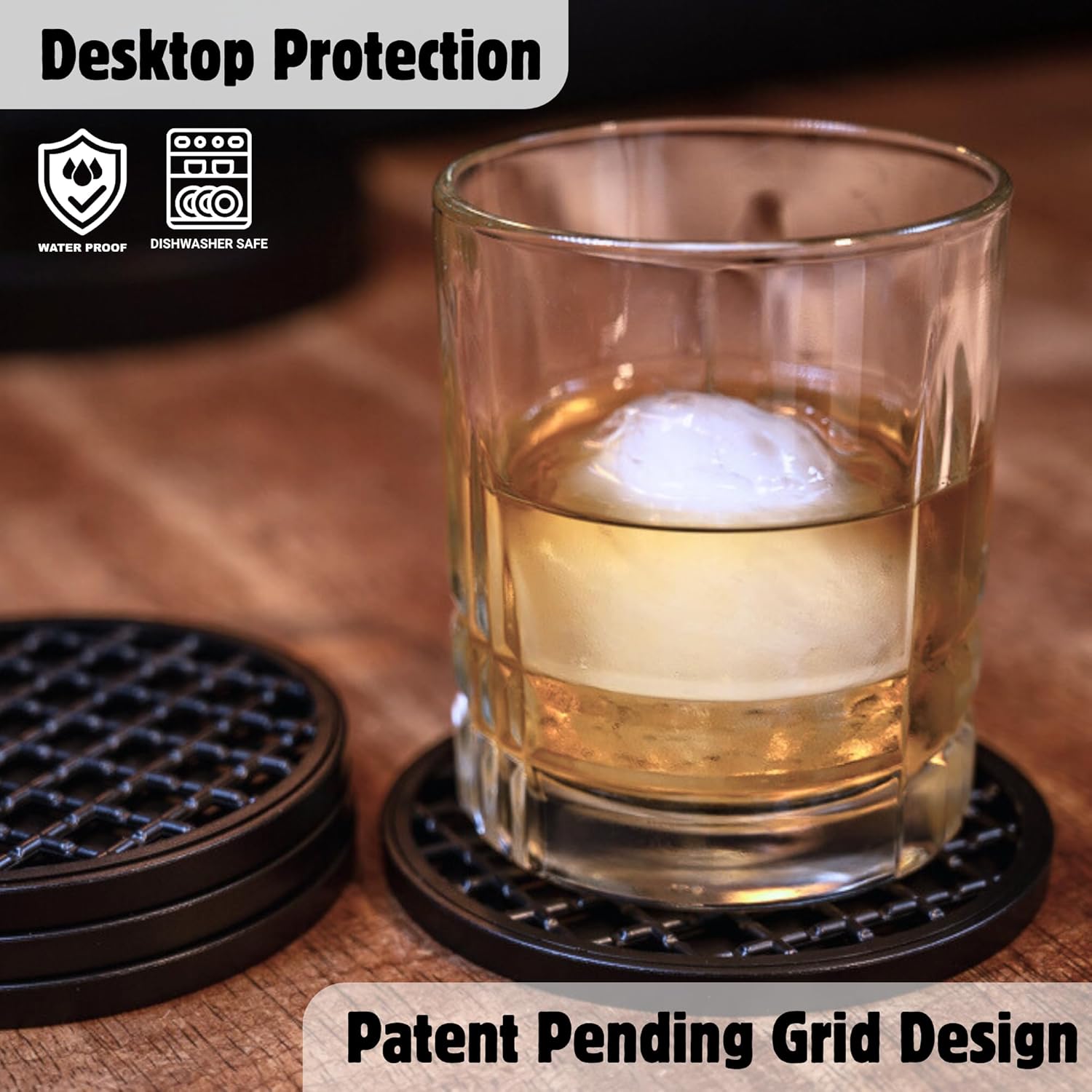 - NON-STICK GRID TOP designed to wick moisture away from your drink and capture within the tray. Coaster will not suction to your drink causing spillage.