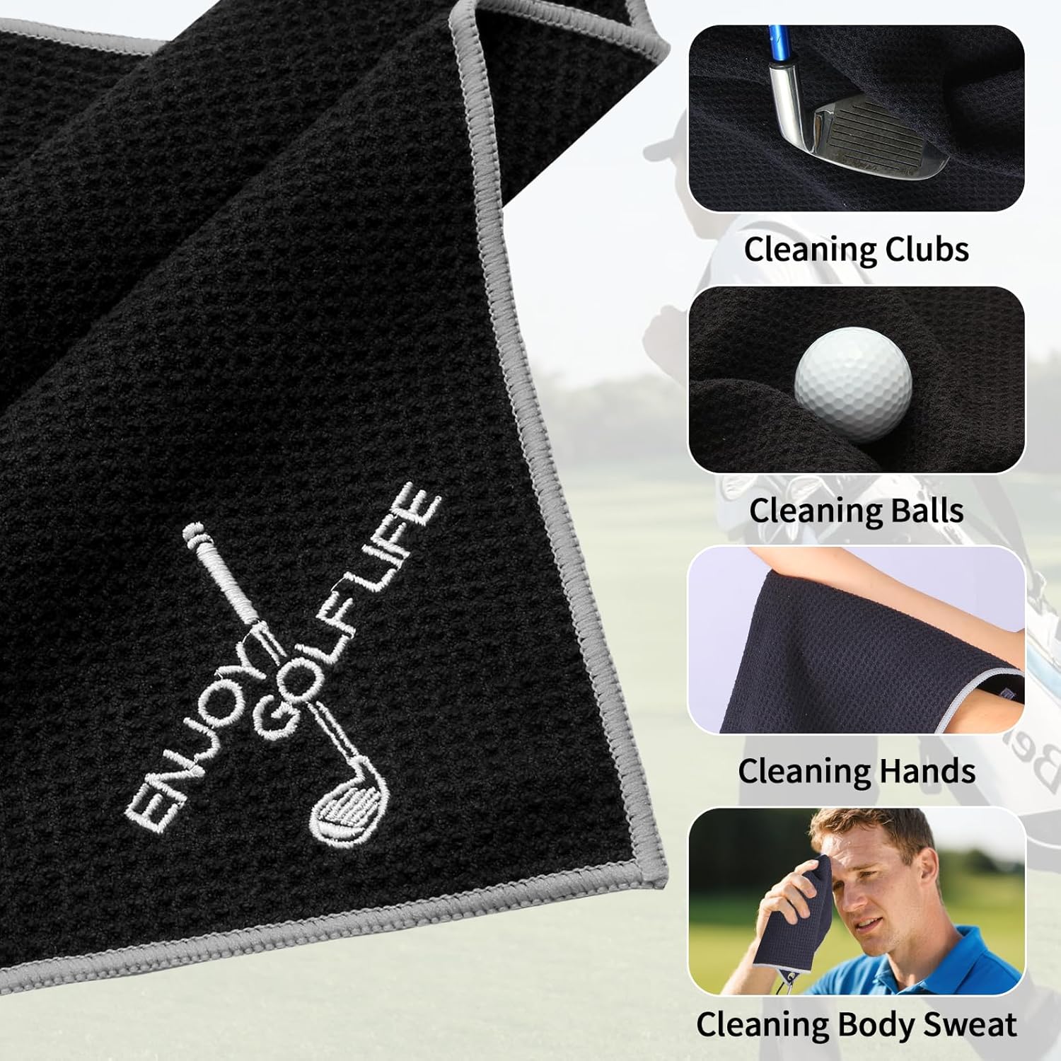 - Premium Embroidery Pattern: Our golf towels feature a premium waffle-pattern in the right size (16" X 16") and are embroidered with a golf club design and text on the towel:Enjoy Golf Life.Starting now swing into Joy, Live the Golf Life