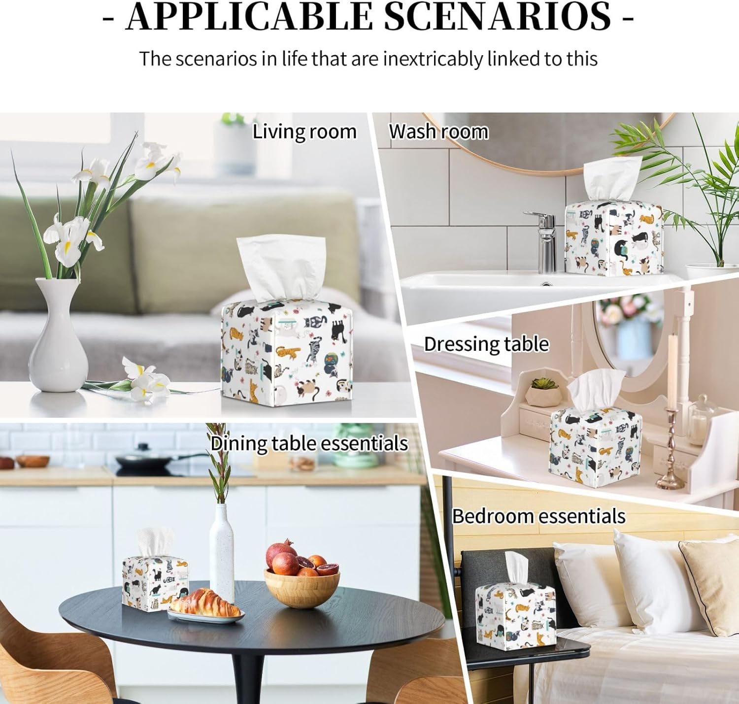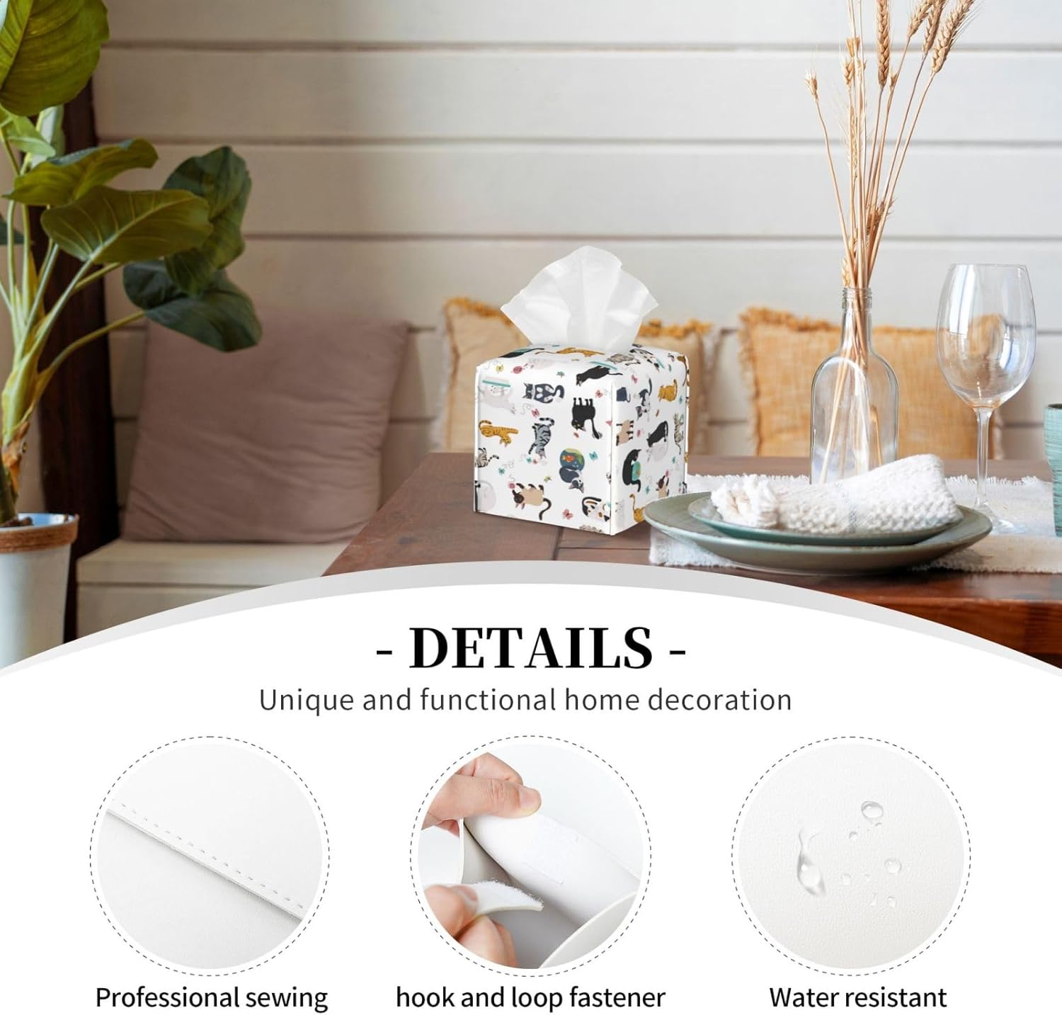 Cat Theme Tissue Box Holder Paper Organizer, PU Leather Tissue Case Cover, Cat Decor for Bathroom, Kitchen, Car