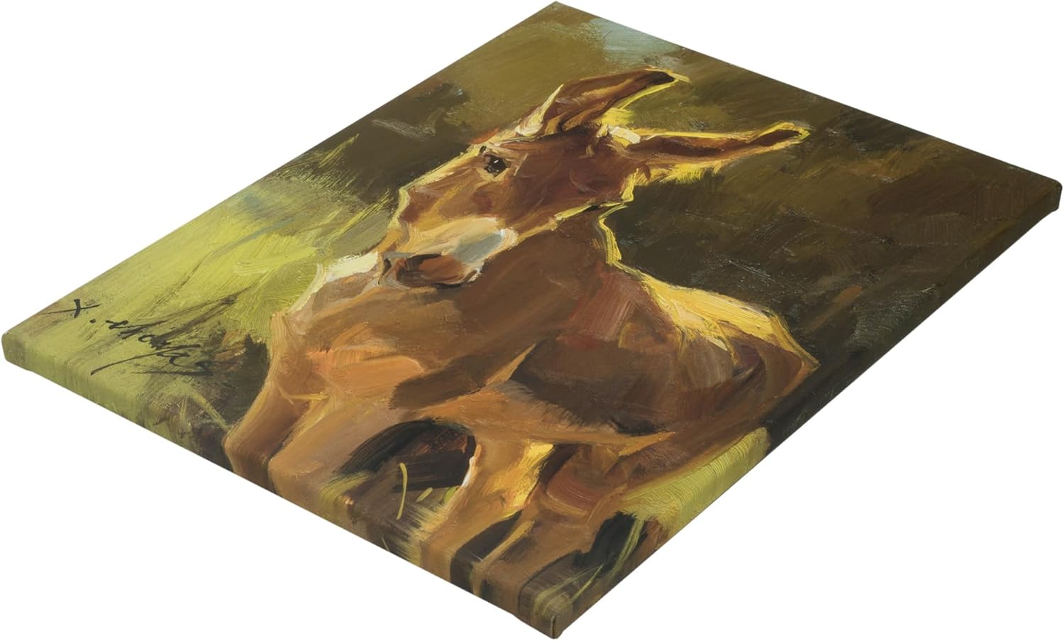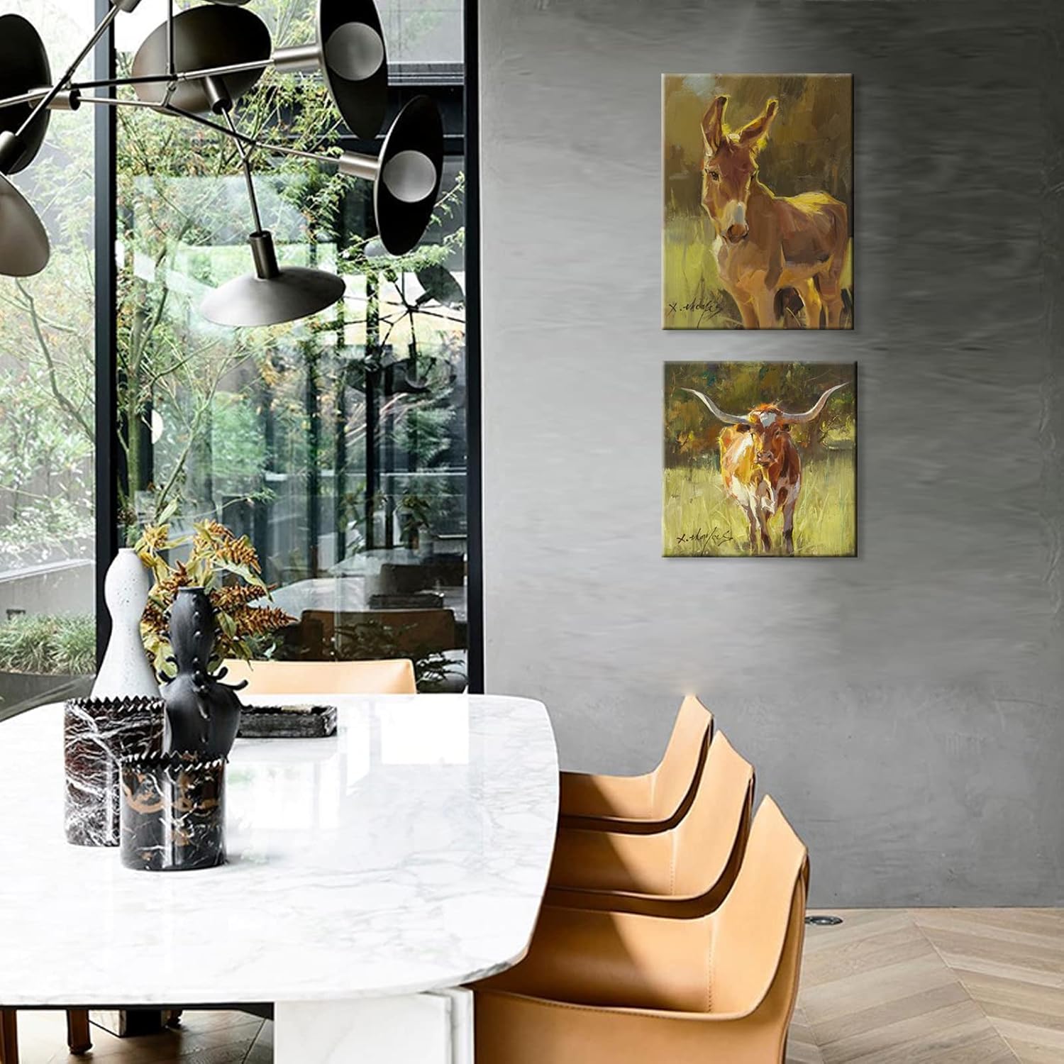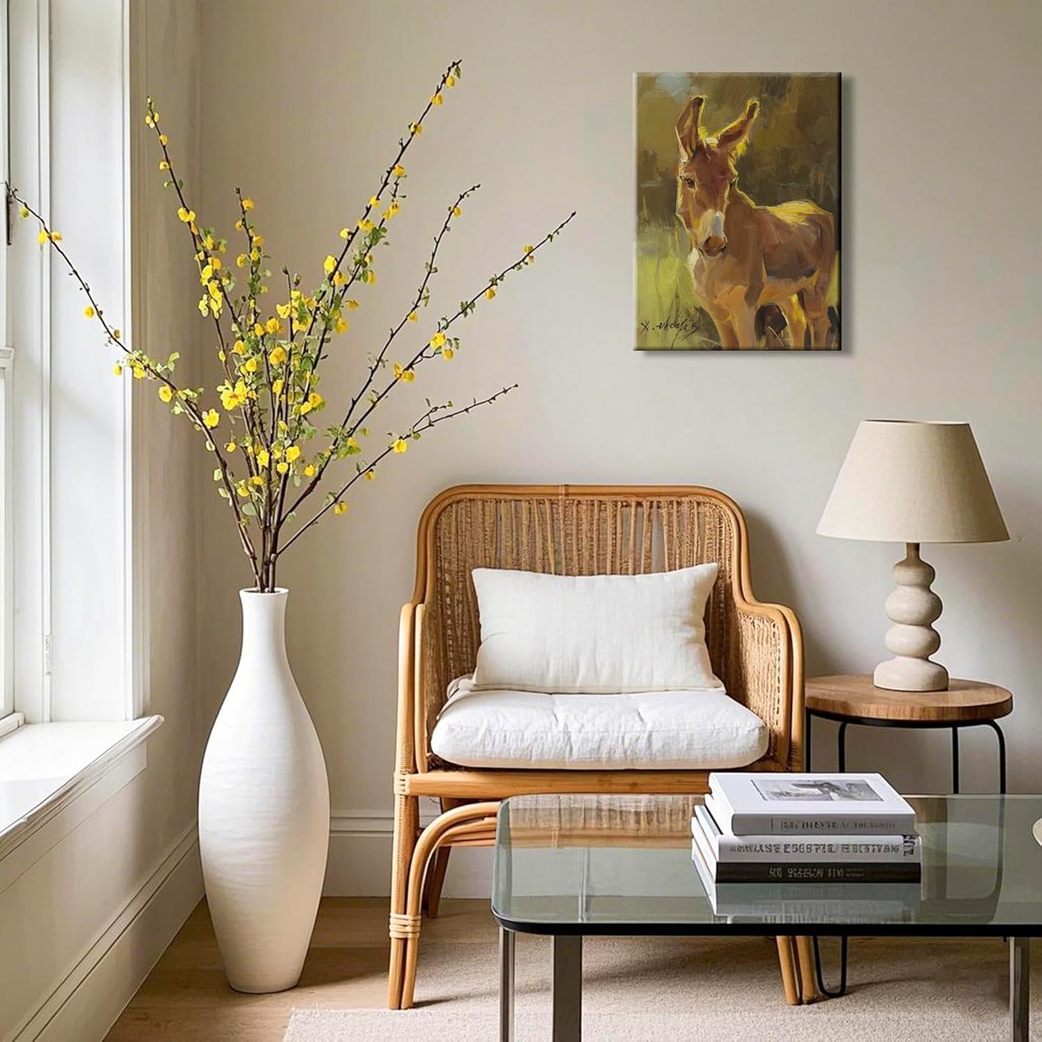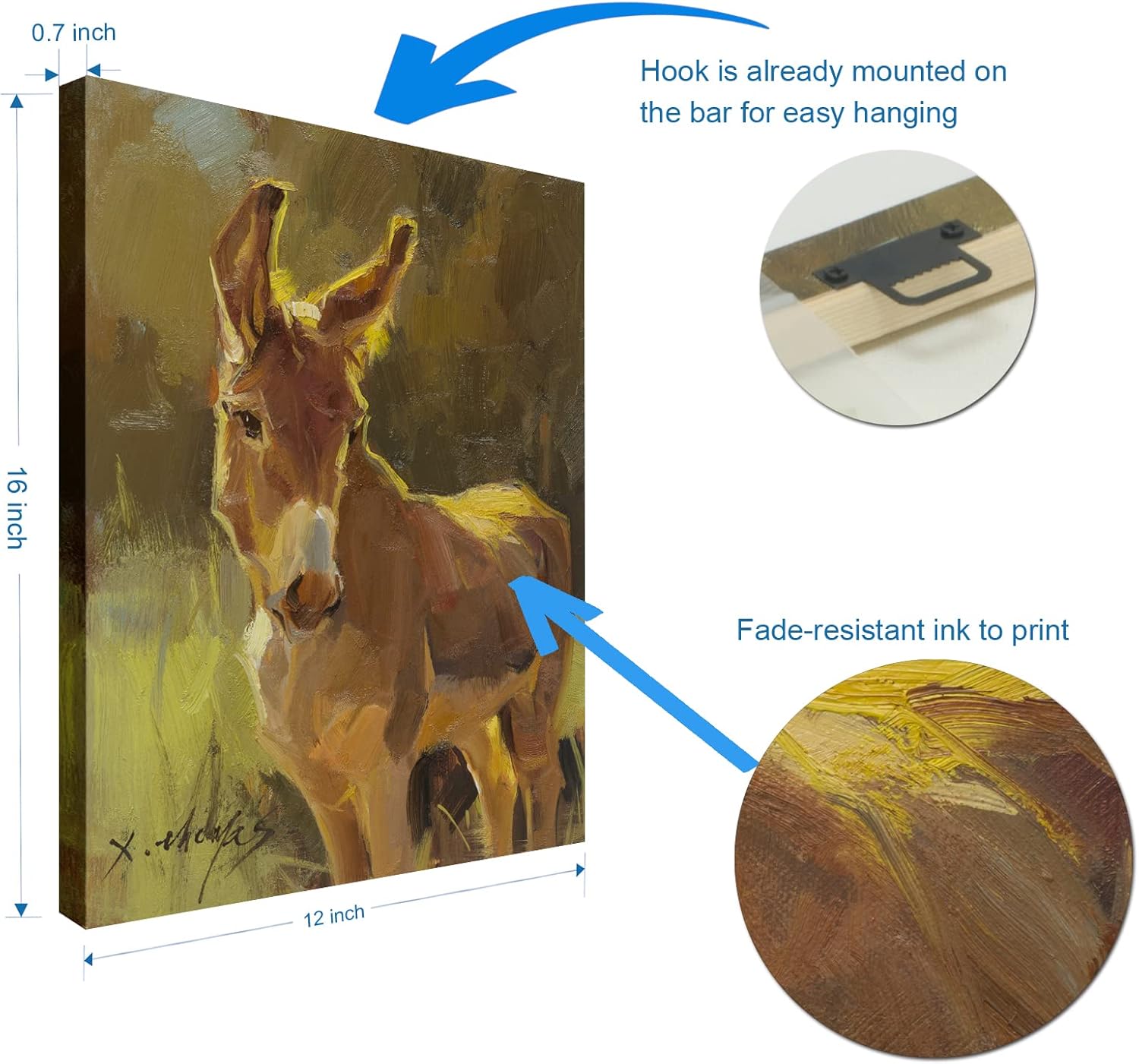 - 【Farmhouse Decor】 Hand-stretched framed donkey canvas print reproduction (12"x16"/30x40cm) featuring artist Thomas Xie's signature donkey oil painting series in contemporary farmhouse style