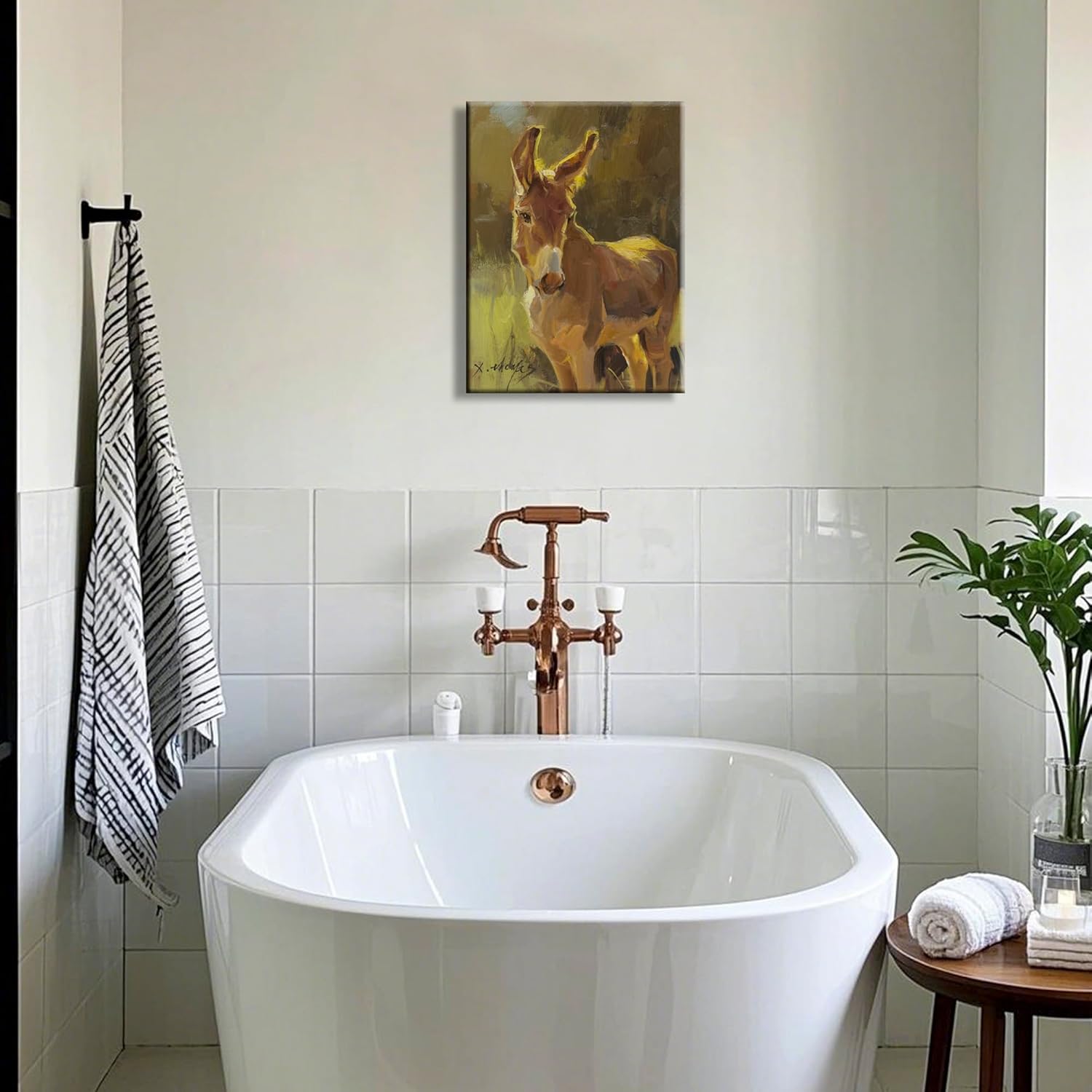 JZLDZS Donkey Canvas Wall Art Print, Framed Rustic Green Farm Animal Pictures Wall Decor for Bathroom Kitchen Bedroom, 12x16 Inch